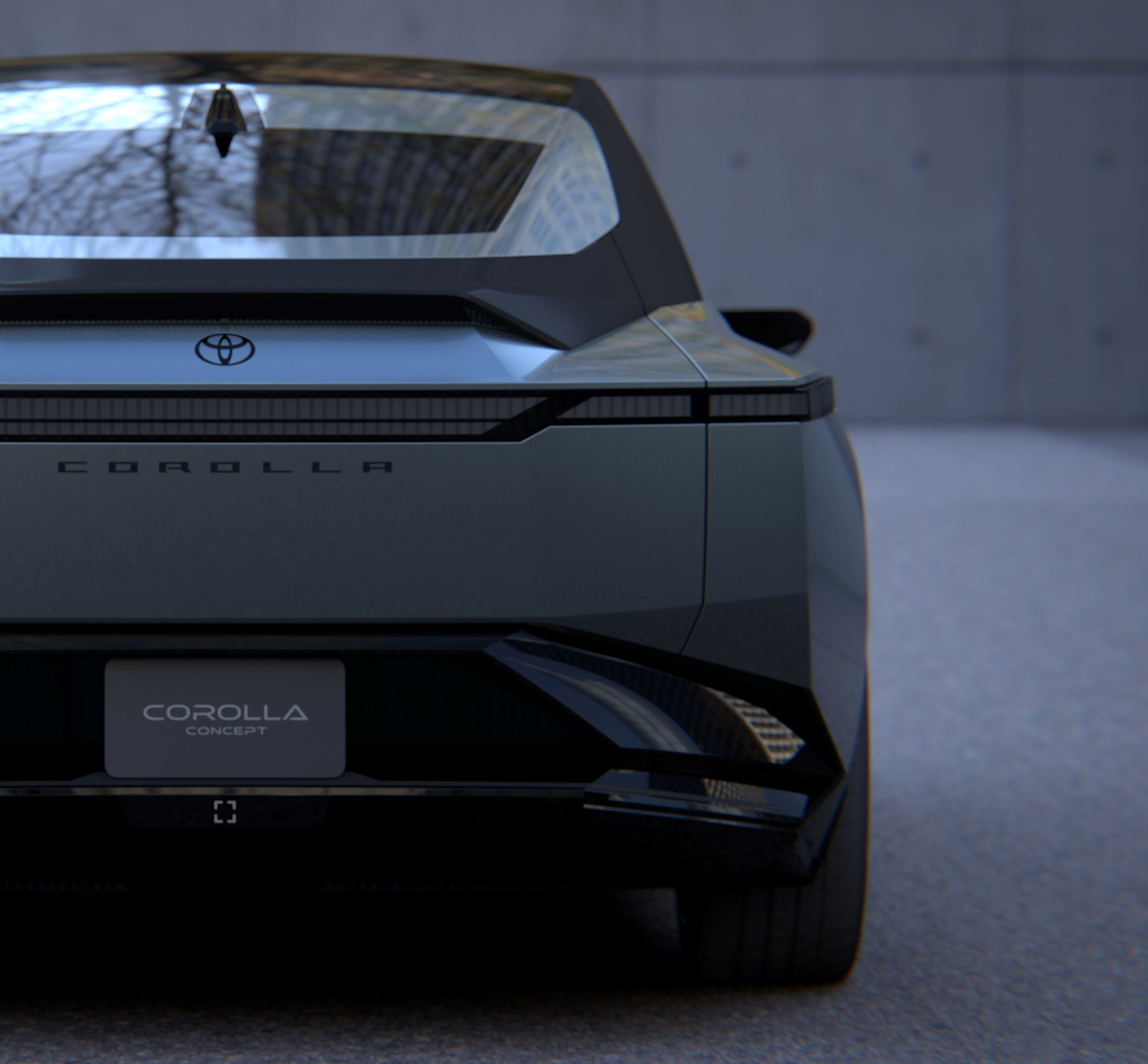 Esto es importante para comprender que el formato que ha escogido Toyota para anticiparnos el futuro del Corolla debería ser lo menos interesante. Toyota ha presentado una suerte de sedán, con una carrocería baja y alargada, y una especie de tercer cuerpo estilo fastback, con una trasera en la que el techo, en ligera caída, se fusiona con la luneta trasera, culminando en una suerte de spoiler y una caída drástica estilo Kammback – sí, como los antiguos Toyota Prius.
