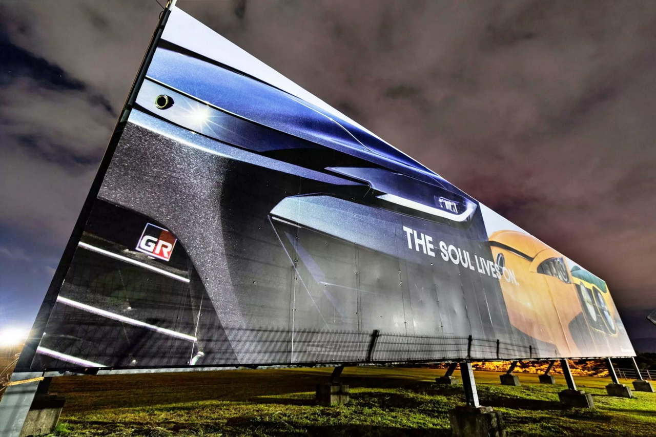 Ha sido a través de los distintos perfiles oficiales de la compañía y su división deportiva, Gazoo Racing, como ha trascendido públicamente la serie de imágenes superior, en la que un cartel publicitario sito en una de las curvas del reputado circuito japonés de Fuji muestra la que es la primera imagen del deportivo en su versión final de producción.