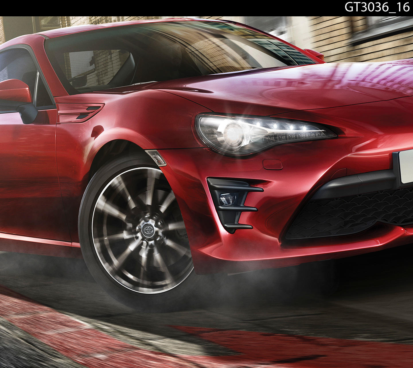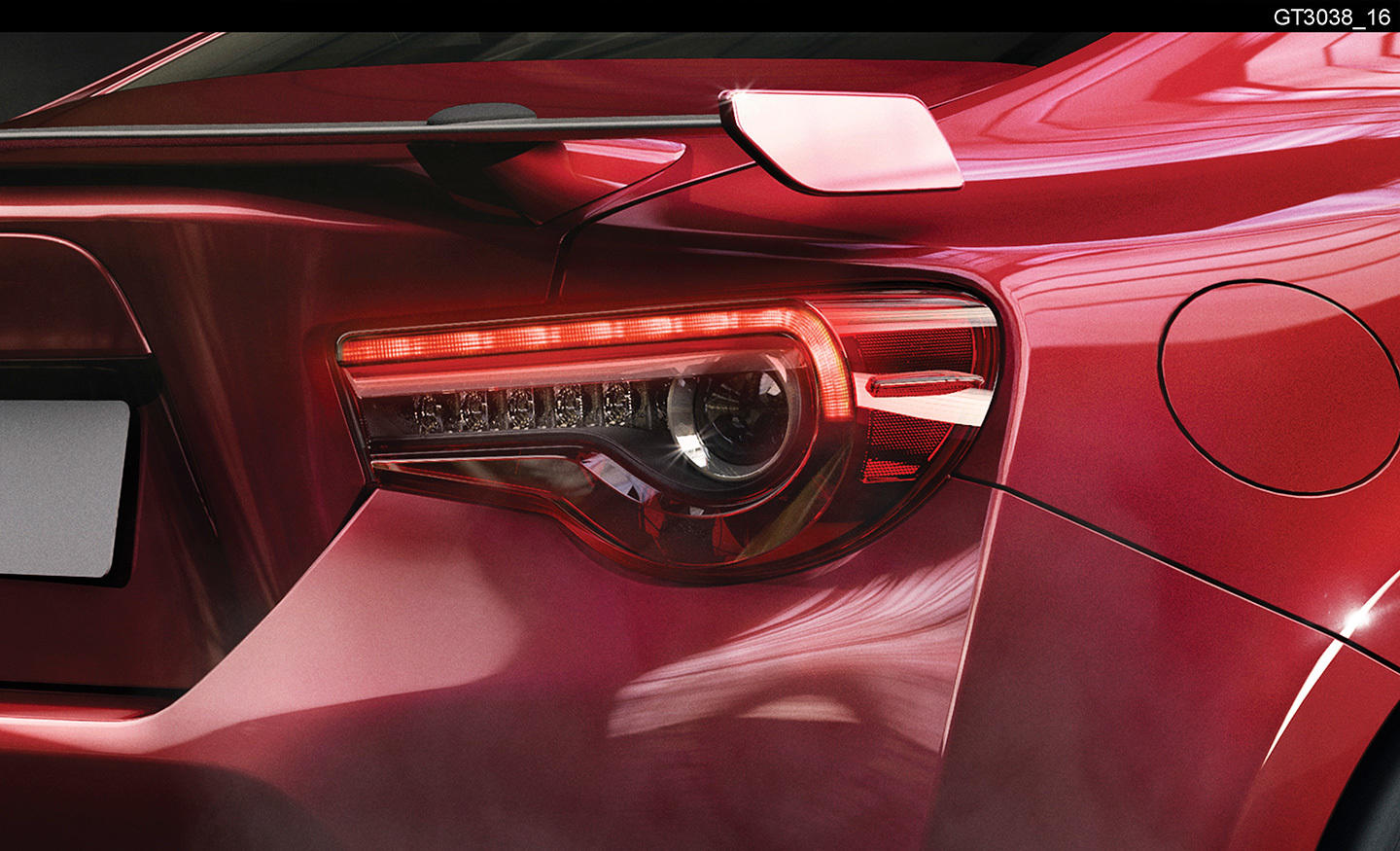 Entre otras novedades, el Toyota GT86 estrena faros y pilotos LED, un capó más bajo y un parachoques delantero más agresivo. También estrena un alerón más grande y fabricado en aluminio, que destaca en negro sobre la tapa del maletero.