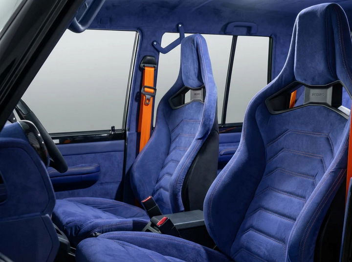 No obstante, lo que más nos ha llamado la atención y lo que da pie a la idea del titular, son los cambios en su interior, donde unos asientos Recaro CS y un tapizado a medida en alcántara azul con contrastes en color naranja, nos han hecho pensar qué hubiera sido del Land Cruiser si Toyota lo hubiera mantenido con vida de igual manera que Mercedes a su Clase G, manteniendo su estética original y dotándolo de la última tecnología disponible.