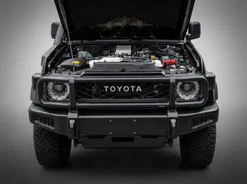 Volviendo al este Land Cruiser de PVC, mecánicamente no presenta cambios con respecto al Land Cruiser FJ70 que todavía se vende en muchos mercados, ya que sí, aún se vende con esta antiquísima caja, pero como todoterreno enfocado al trabajo en campo puro y duro en mercados específicos. Estamos, por tanto, ante el icónico motor de 2,8 litros de capacidad y cuatro cilindros, que en este caso entrega 204 CV y 500 Nm de par motor.
