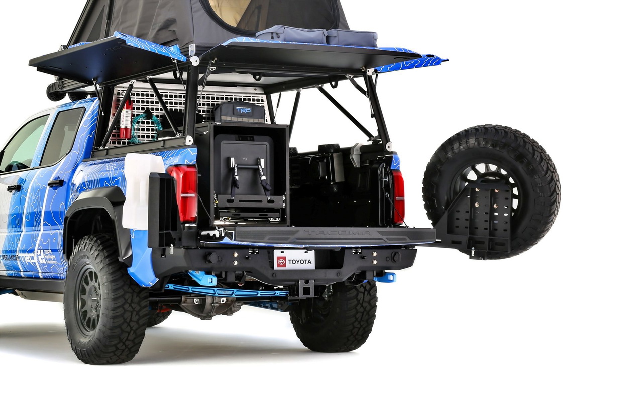 Y es que no podemos olvidar que esta Toyota Tacoma H2 Concept es también una camper, una adaptación que permite disfrutar de una tienda de campaña para dos adultos, módulo de cocina, almacenamiento y diferentes gadgets que permiten poder realizar escapadas de varios días muy lejos de la civilización.