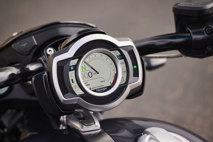 Tenemos una llanta trasera de 16 pulgadas con un neumático de 240 mm de sección, más ancho que el de muchos coches. Tenemos ABS de doble canal con optimización en curva, tenemos cuatro modos de pilotaje, tenemos control de crucero y tenemos control de tracción. Es una moto completísima a nivel dinámico, y controlaremos todos sus atributos desde su instrumentación digital.