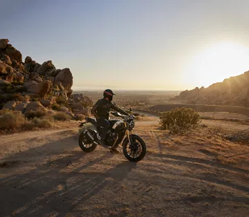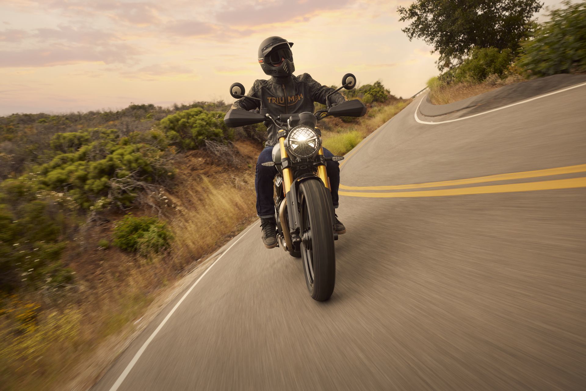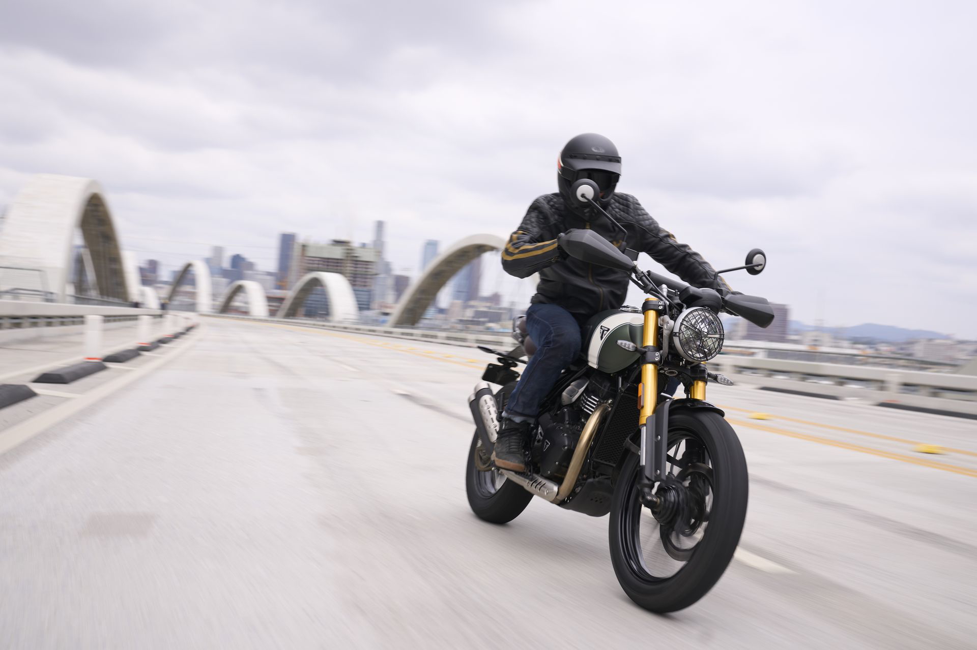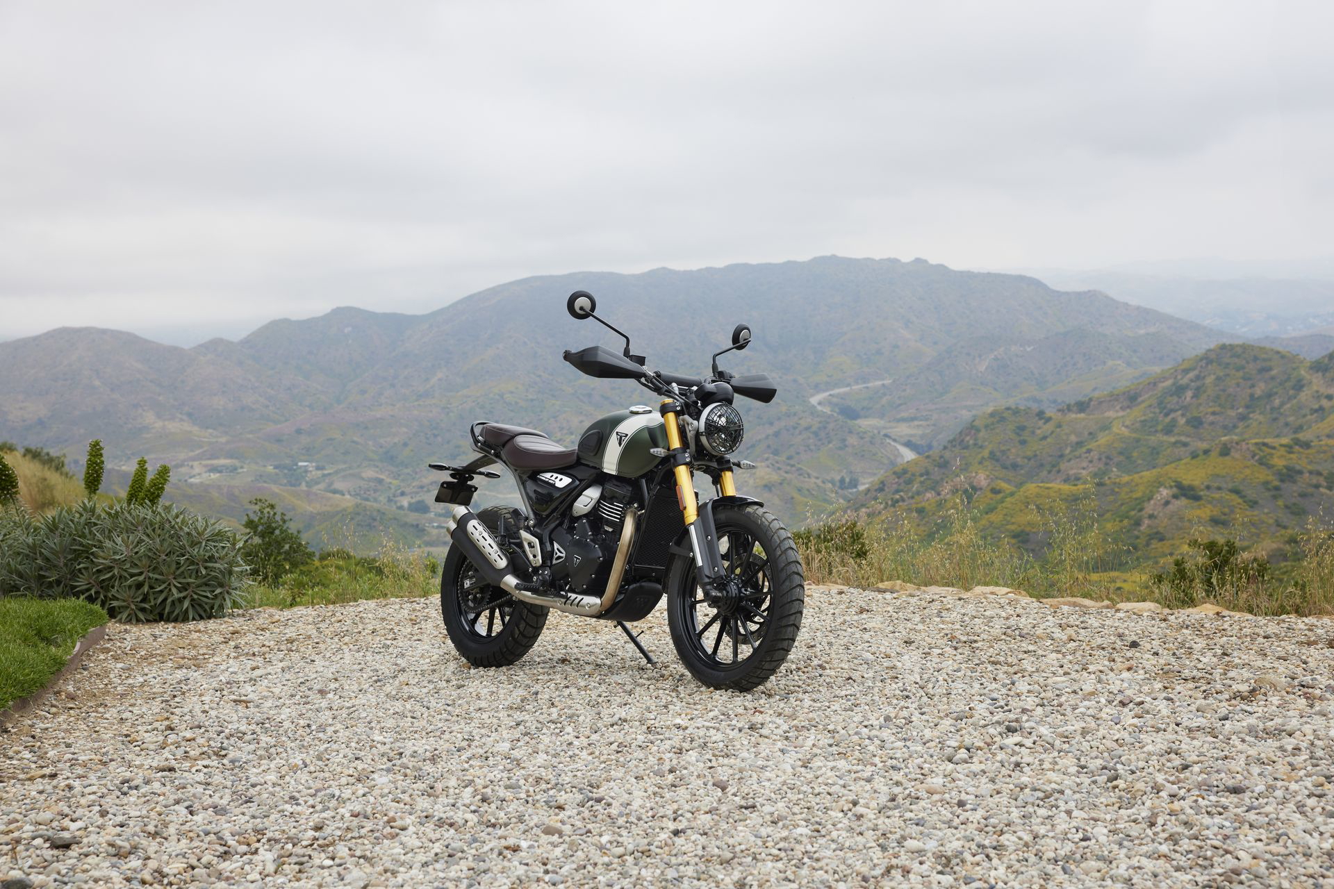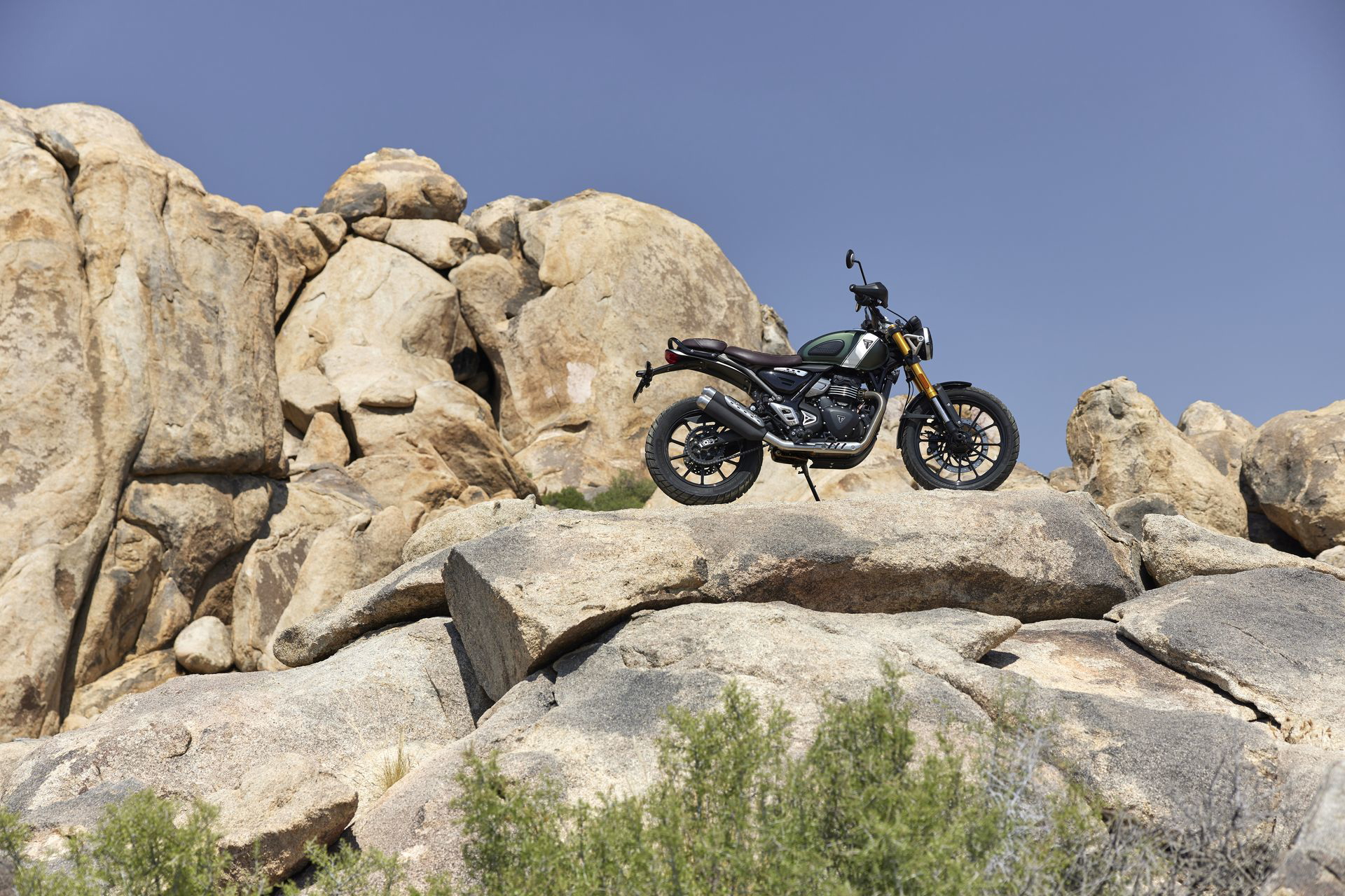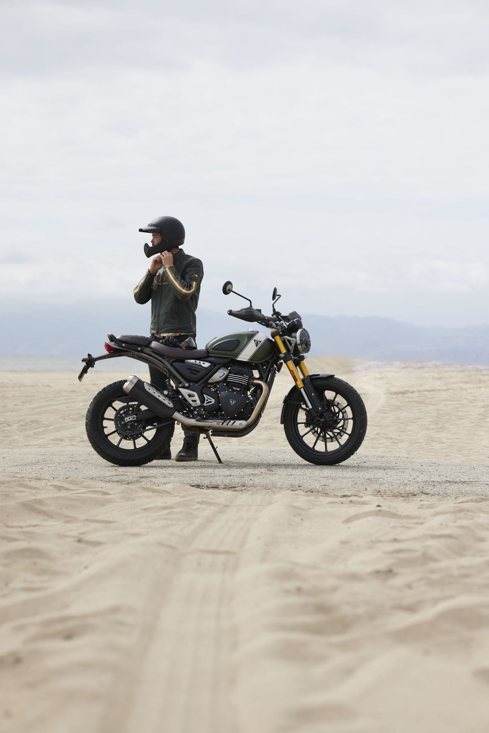 Esa moto se llama Triumph Scrambler 400 X, y es la moto de acceso a la gama de motos scrambler de Triumph. Las scrambler originales eran motos de origen deportivo, con partes ciclo preparadas para un uso mixto. Equipadas con escapes laterales y neumáticos todoterrenos, surgieron durante los años 50 y 60 del pasado siglo, e inicialmente eran preparaciones por parte de aficionados. Hoy en día son un rentable nicho de mercado, y Triumph es una de las marcas que más los ha aprovechado – alguna ventaja tenía que tener ser una de las pioneras del movimiento.