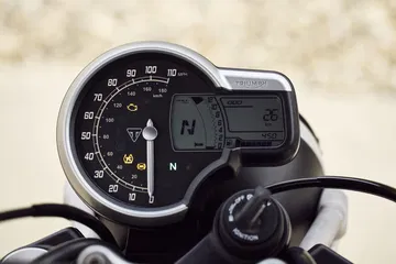 El equipo de frenado consta de un disco delantero de 320 mm con pinza de cuatro pistones, y un disco trasero de 240 mm. El ABS de doble canal es de serie y se completa con un control de tracción desconectable. Para una moto que pesa 179 kilos en orden de marcha, tiene una parte ciclo correctísima. En cuanto a equipamiento, contamos con una instrumentación con velocímetro analógico y una pequeña pantalla LCD multifunción. El precio en España de la Triumph Scrambler 400 X es de 6.095 euros al contado – accesorios aparte.