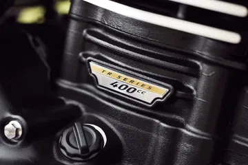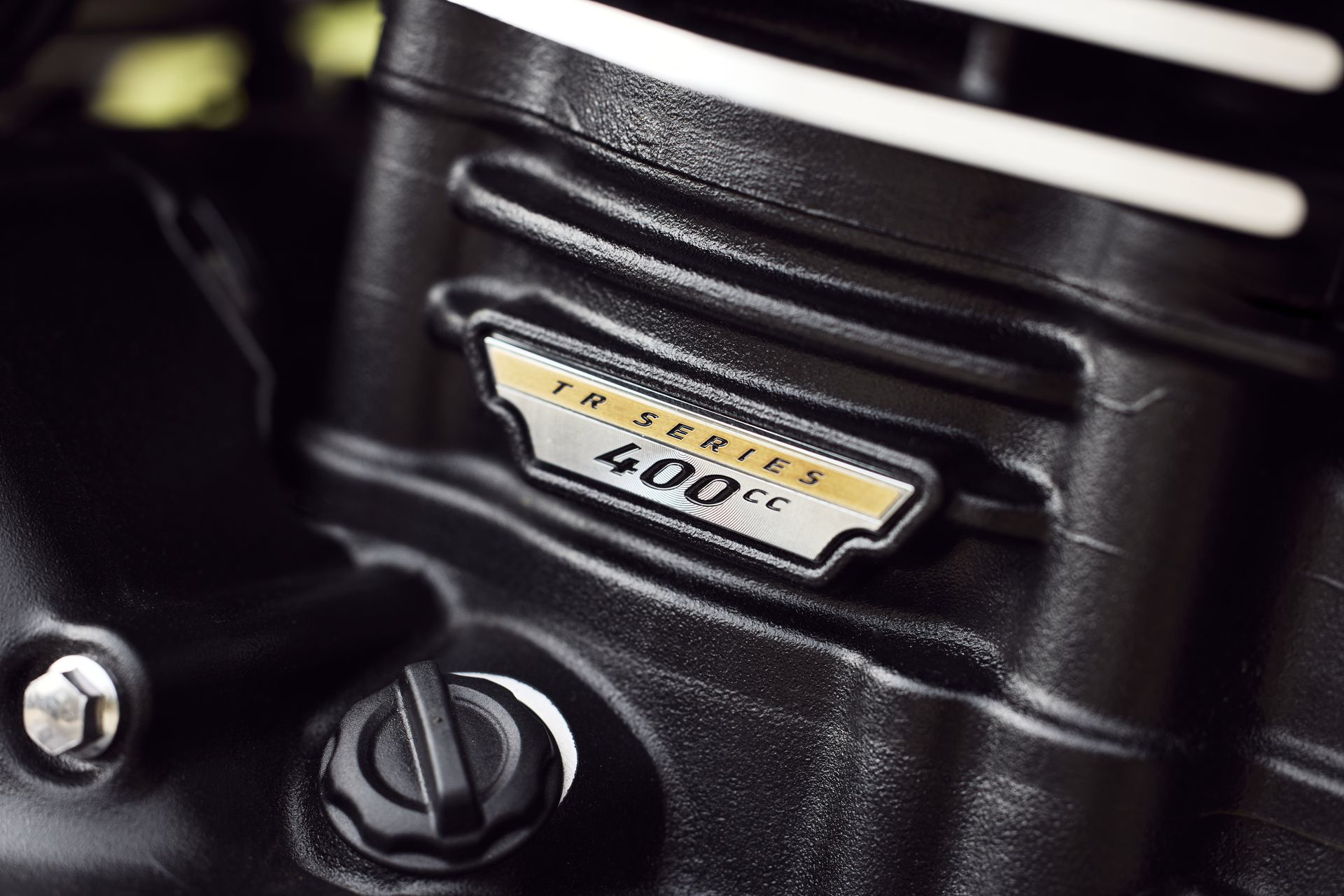 La prueba es esta Triumph Scrambler 400 X. Estéticamente es una «chuchería», con un escape lateral, neumáticos mixtos y un aspecto que nos recuerda a sus hermanas mayores. Más de 20 accesorios permiten personalizar el diseño de la moto hasta donde nuestro presupuesto quiera llegar, con elementos como máscaras para el faro, cubrepuños, una pantalla parabrisas o un cubrecárter de aluminio – imprescindible si nos atrevemos a salir a algún camino en mal estado con la moto. El corazón de esta moto es un nuevo propulsor de 398 centímetros cúbicos.