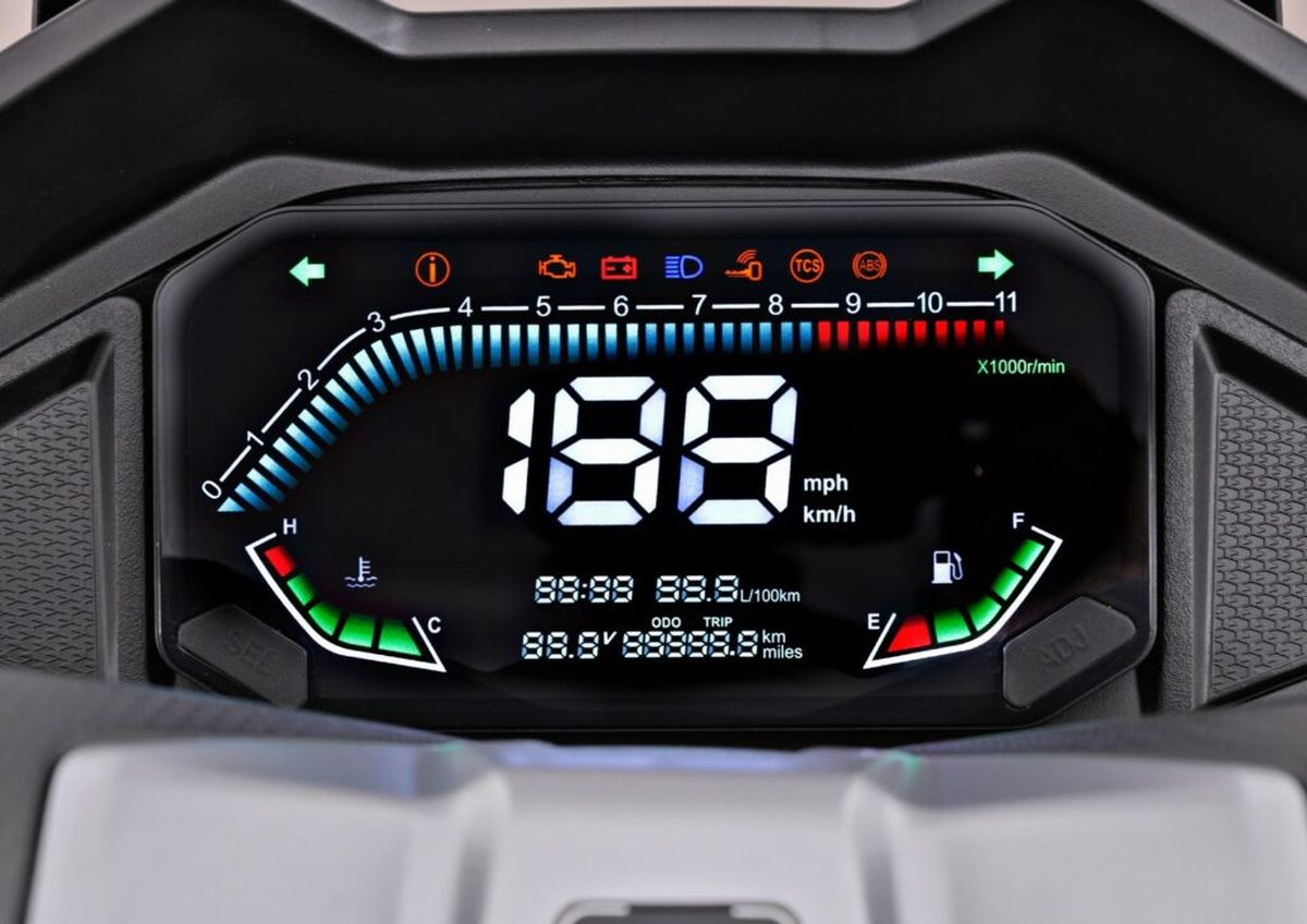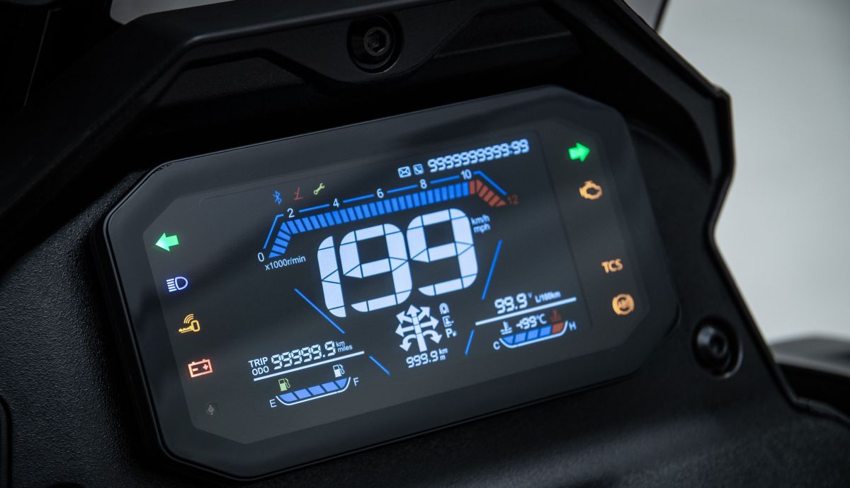 También en el precio están incluidos la instrumentación digital con conectividad móvil, las estriberas para el pasajero abatibles, guantera tras el escudo, toma USB, pata de cabra lateral y caballete central, cúpula delantera regulable en altura. hueco bajo el asiento de 29 litros de capacidad, llave inteligente, etc.
