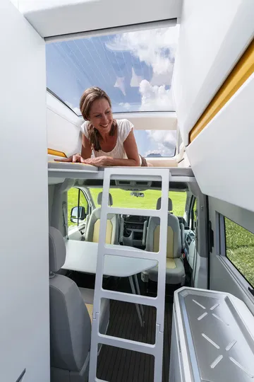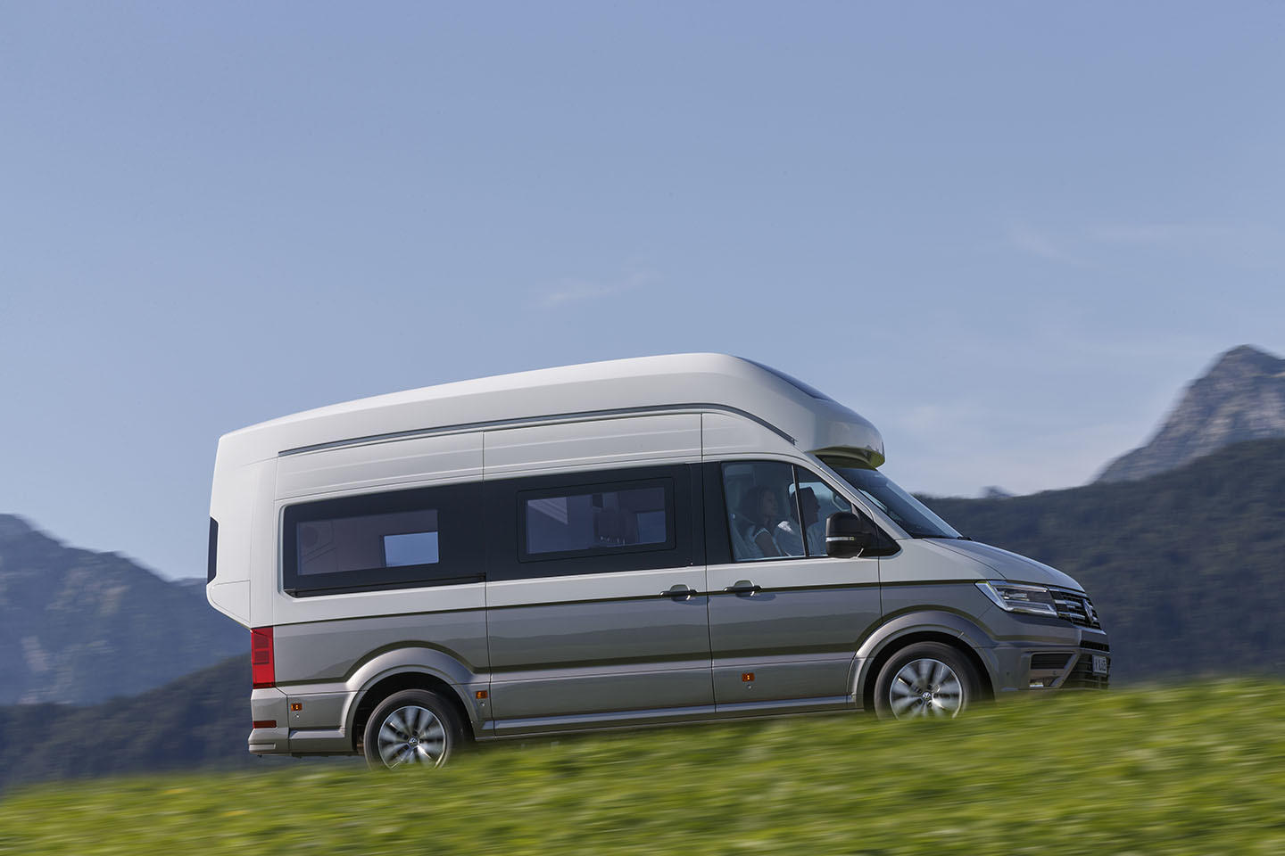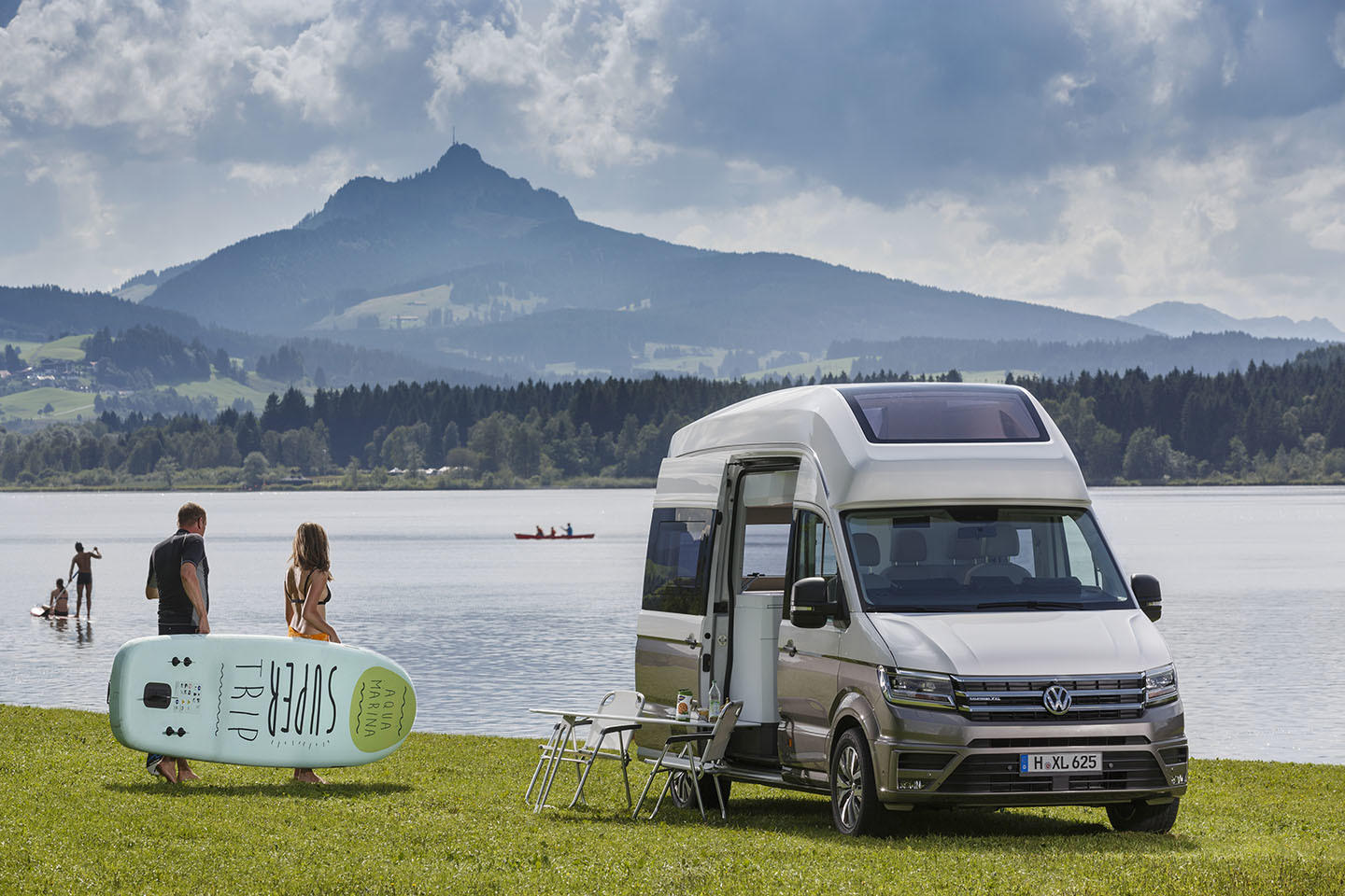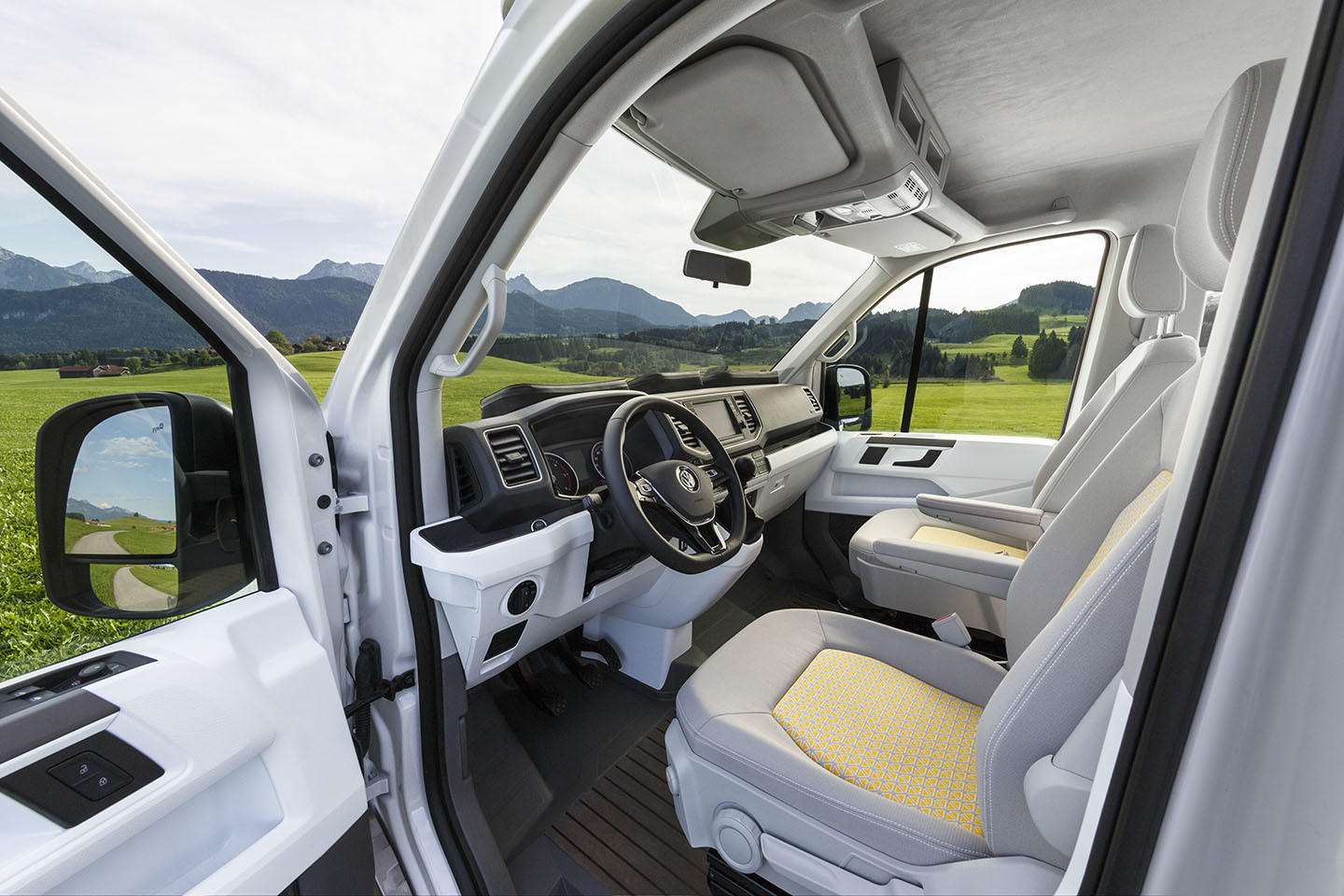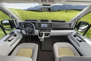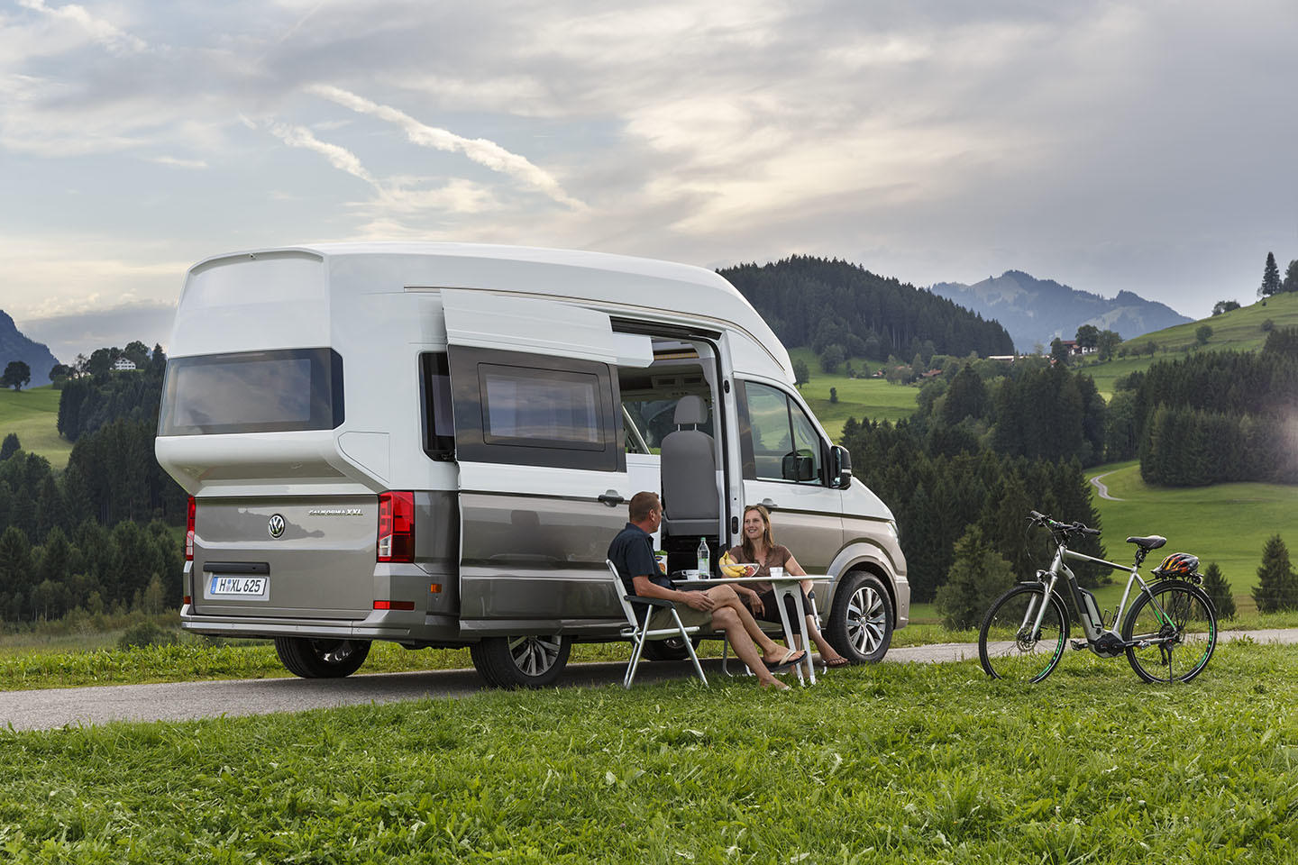 La base de la Volkswagen Crafter y el techo fijo panorámico, aumentan significativamente el espacio a bordo de la Volkswagen California XXL.