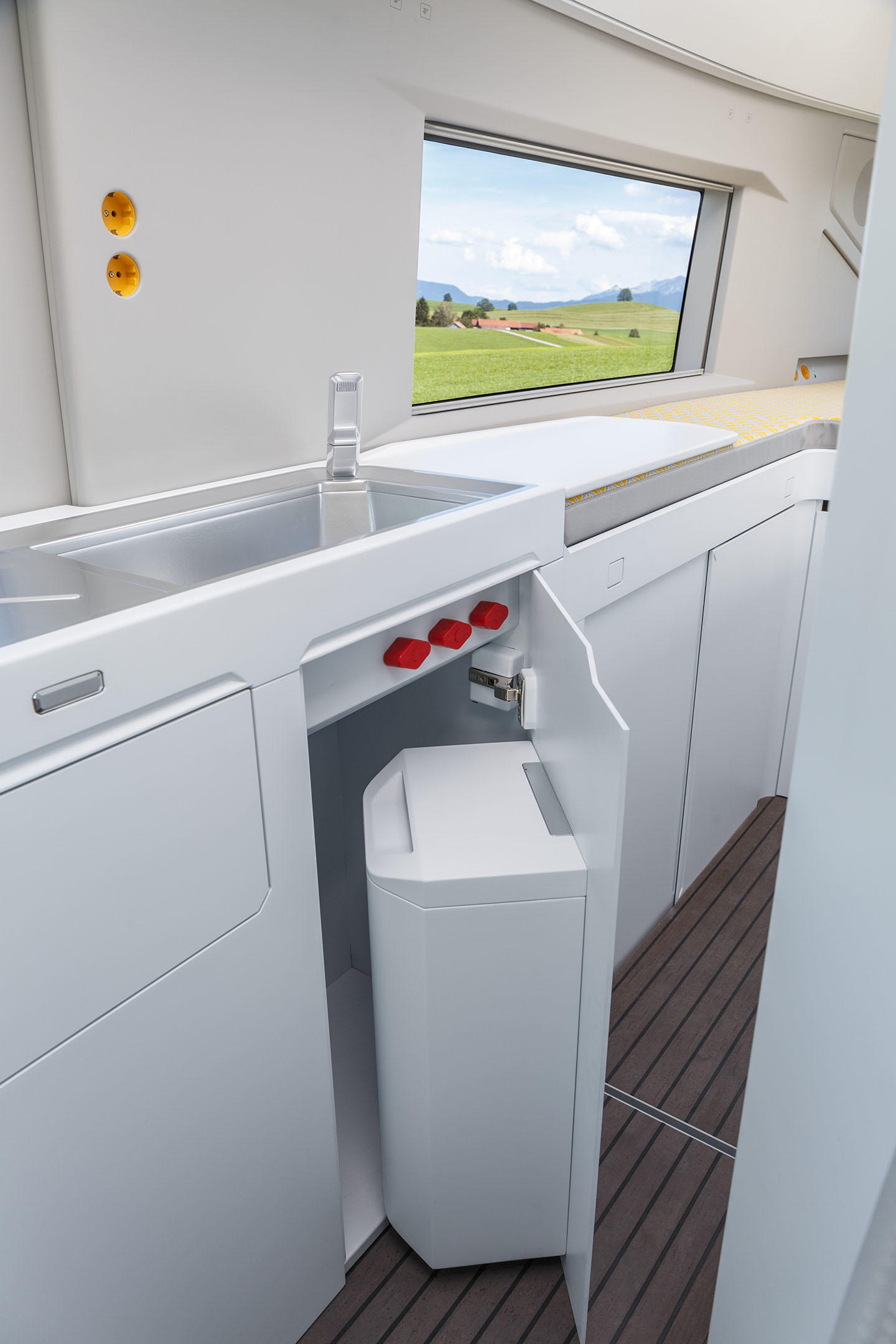 Y todo ello sin prescindir del equipamiento necesario en una autocaravana, como la cocina.