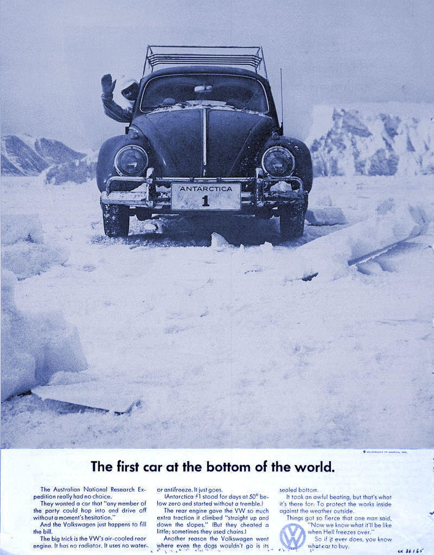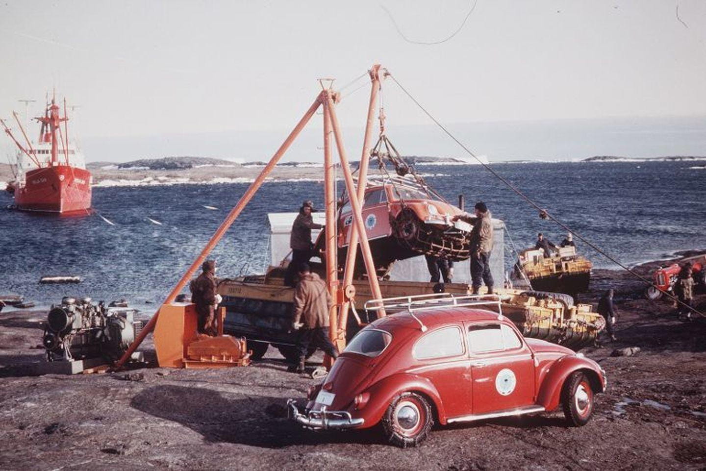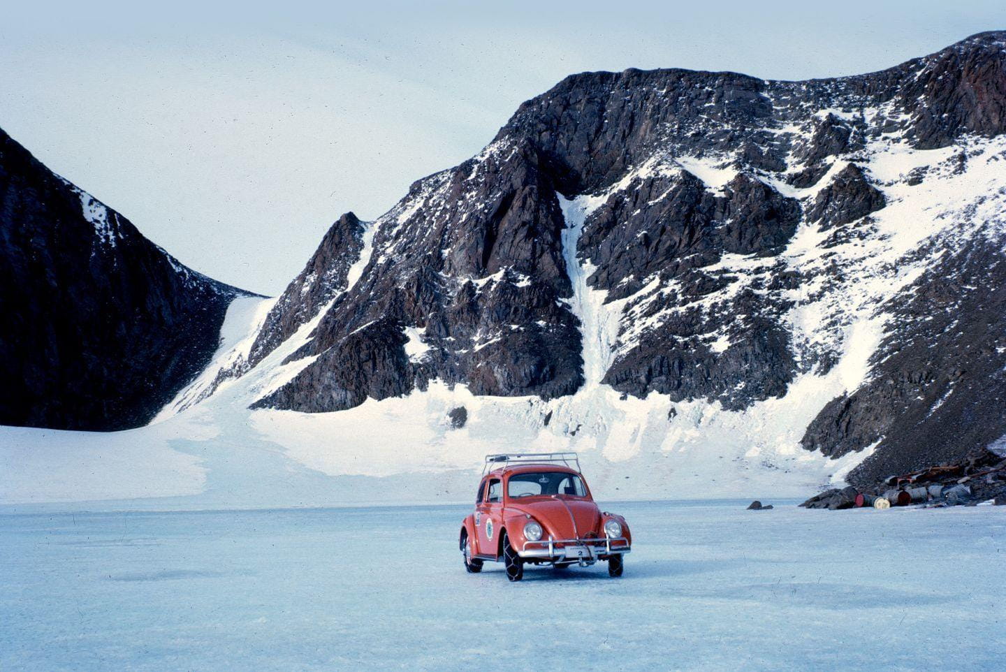 Realmente, este Volkswagen Beetle rojo no fue el primer coche en llegar a la Antártida. A principios del siglo XX desembarcaron en la Antártida un Arrol-Johnston de 1907 – parte de la expedición de Sir Henry Shackleton – y un Austin 7 del año 1927. Ambos fueron máquinas inútiles: el Arrol-Johnston apenas tenía potencia para moverse y se averiaba constantemente; el Austin 7 no tenía carrocería y sufría problemas mecánicos similares. Aquél Austin tenía ocho ruedas y cadenas metálicas para poder moverse por la nieve y el hielo.
