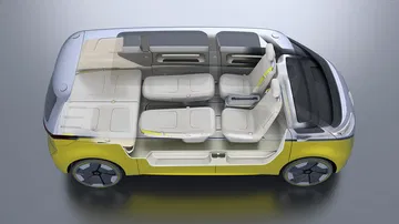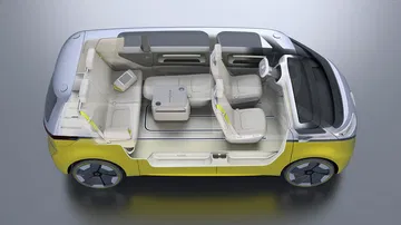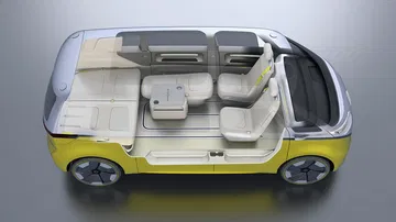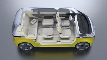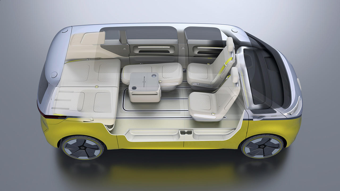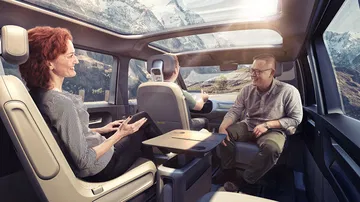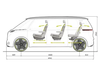 Al contar con capacidades autónomas, una furgoneta como esta permitiría configuraciones de asientos inéditas hasta la fecha. Configuraciones como viajar con los asientos delanteros orientados en sentido contrario a la marcha y transformar el interior en un ambiente ideal para el ocio o en un improvisado espacio de trabajo, una oficina rodante.