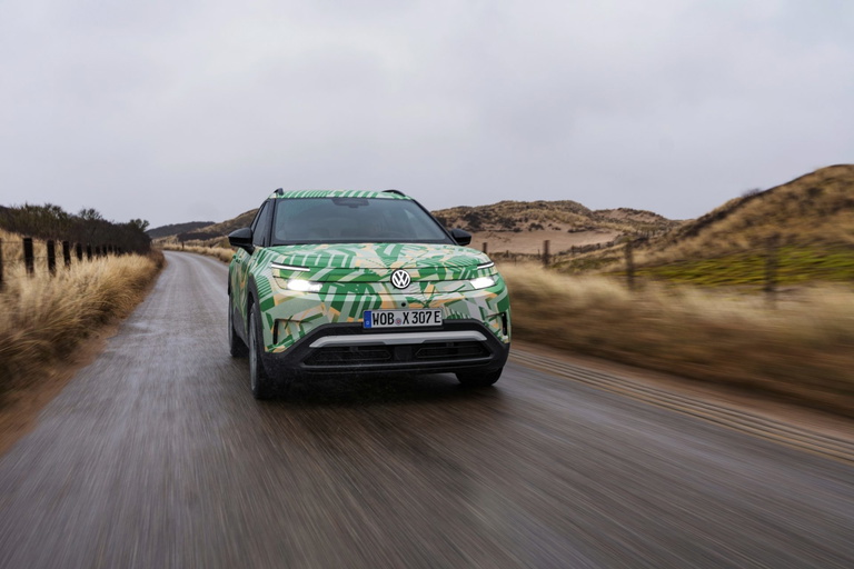 Desde el punto de vista estético, el modelo mostrado por la marca tiene un camuflaje que no deja verlo en su totalidad, aunque sí es bastante ligero y deja saber prácticamente todo sobre su diseño final. El ID. Cross adopta el nuevo lenguaje de diseño denominado «Pure Positive» que Volkswagen está introduciendo en su futura gama eléctrica. Se caracteriza por superficies limpias, proporciones equilibradas y una estética deliberadamente sobria, algo que al que escribe estas líneas recuerda fuertemente a los que fueron los mejores años de Volkswagen, aquellos en los que la quinta generación del Volkswagen Golf despuntaba comercialmente y en la que todo movimiento que hacían los alemanes era seguido por el resto.