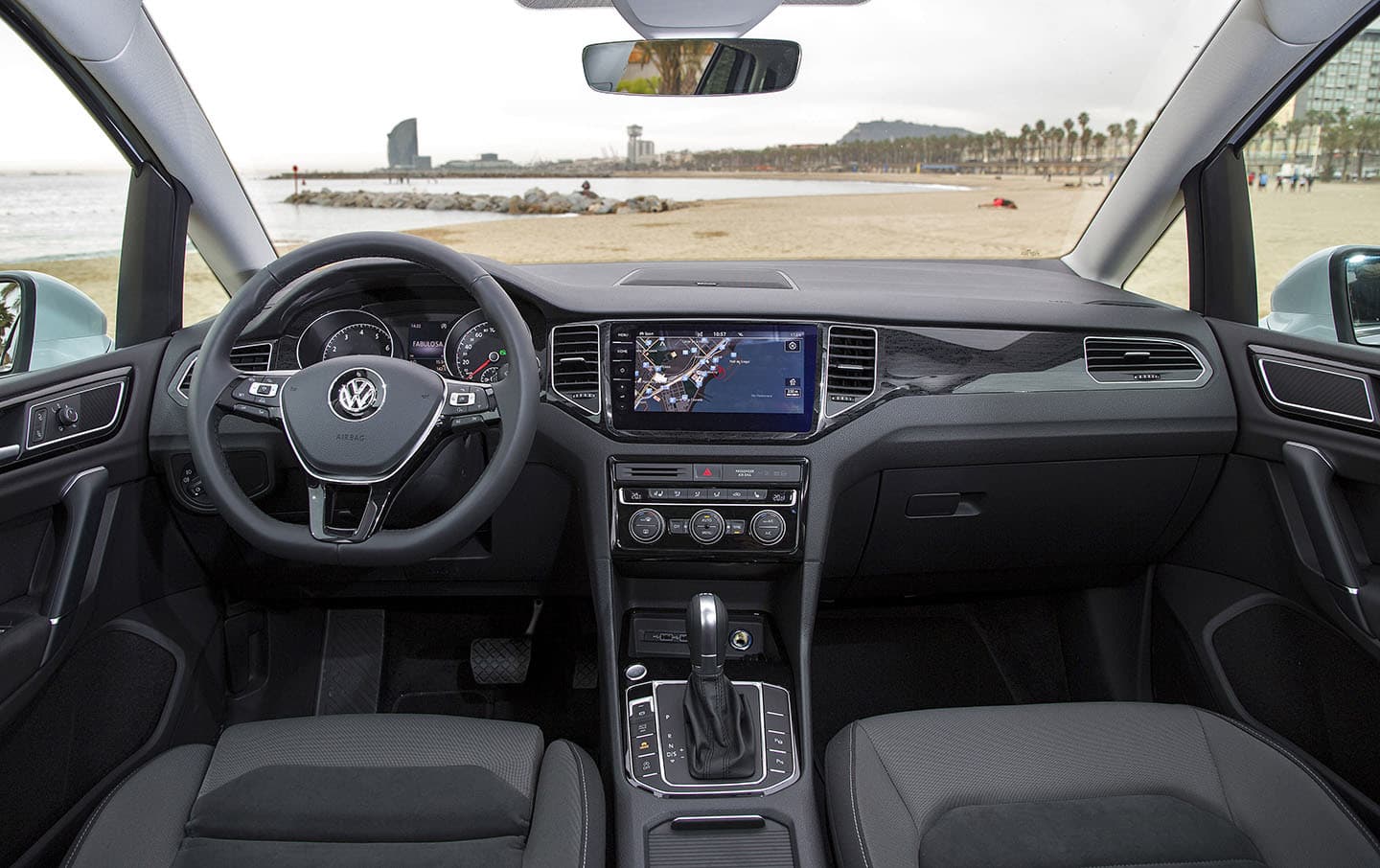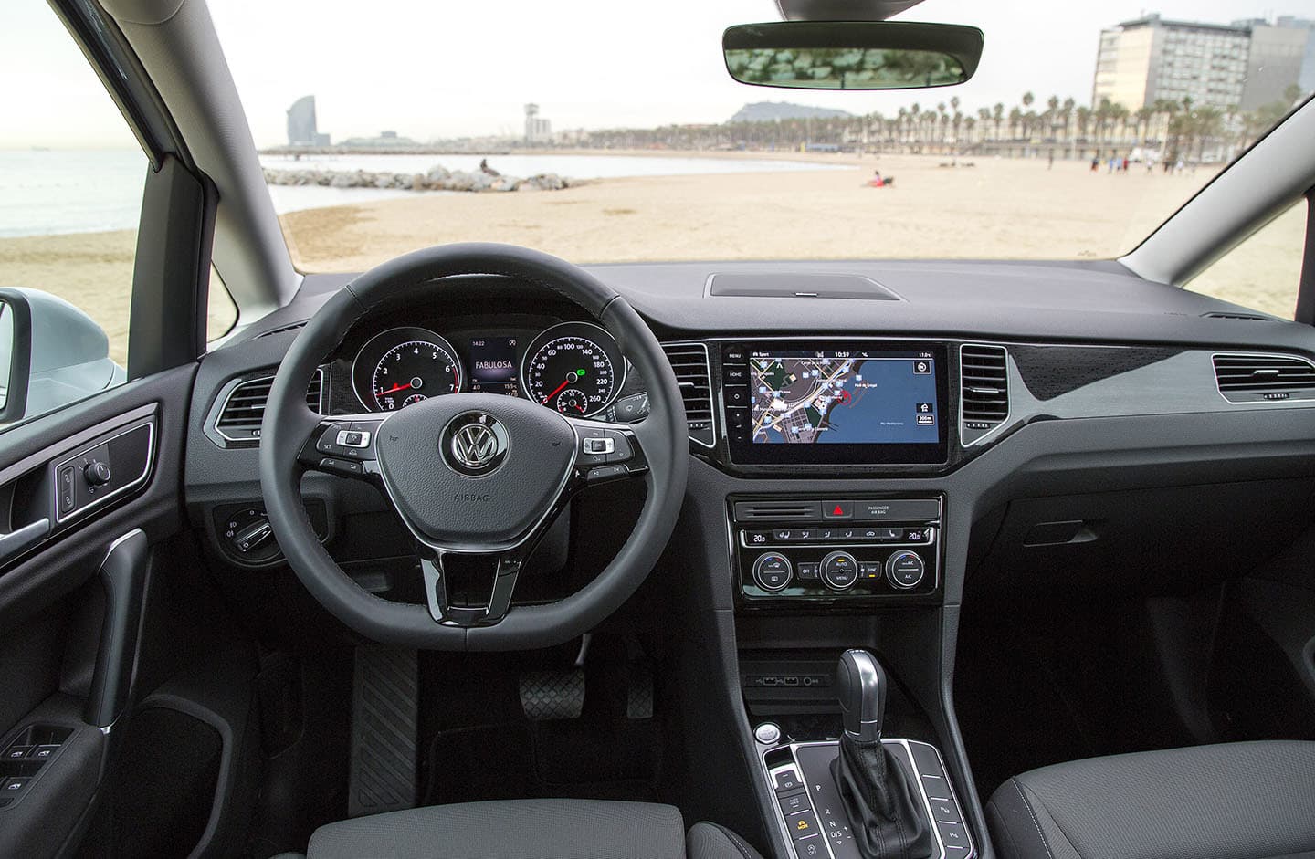 Los mini-monovolúmenes son una especie en peligro de extinción en el mercado, siendo un ejemplo de ello el BMW Serie 2 Active Tourer – el cual, nuevo, vale unas cuatro veces más que el Golf Sportsvan que nos ocupa. Las primeras unidades cuentan con una pequeña pantalla coronando la consola central, mientras que de 2017 en adelante encontramos una pantalla digital moderna situada más abajo, situando por encima salidas de aire que se agradecen en las plazas traseras.