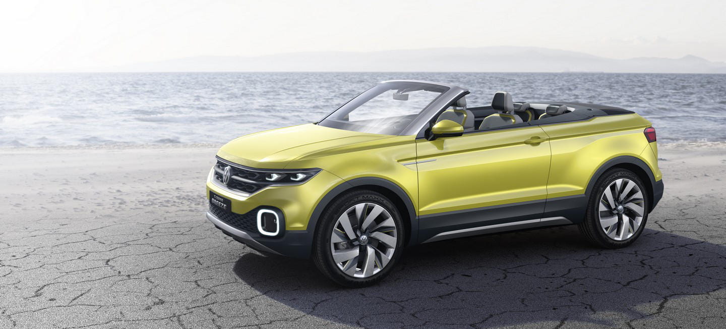 Imágenes del prototipo Volkswagen T-Cross Breeze de 2016, un anticipo del T-Cross, en versión descapotable. El T-Roc se espera que tenga una imagen muy parecida, aunque con un tamaño ligeramente mayor.