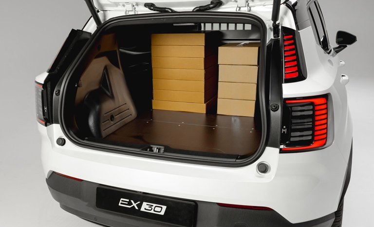 - Volvo ha convertido al EX30 en un vehículo con una zona de carga de 1.000 litros y hasta 390 kg de carga útil.