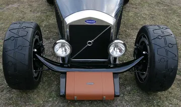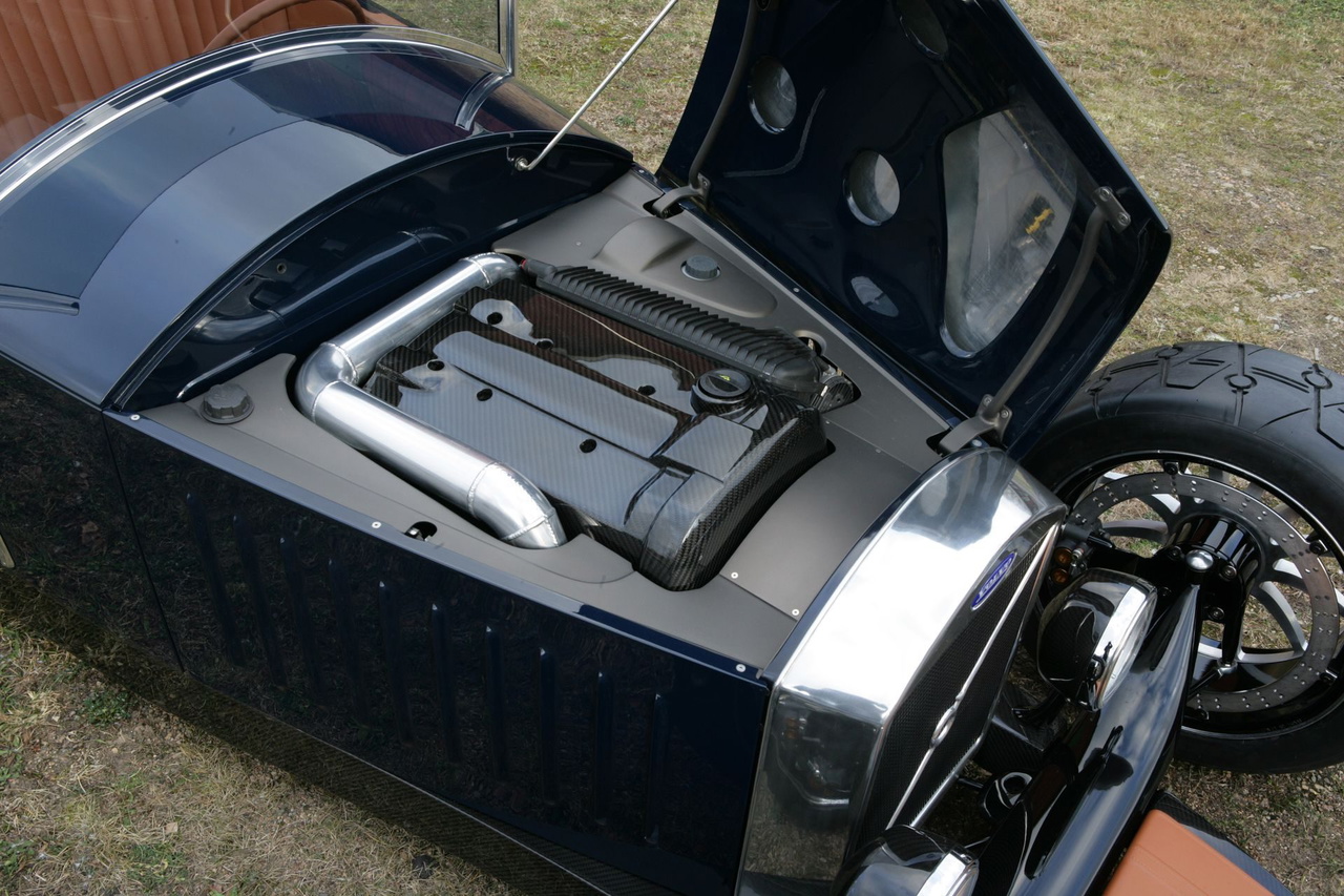 Su eje trasero sobresalía por detrás de la carrocería, con un llamativo diferencial en cuya carcasa se montaron las luces de freno. El interior era absurdamente simple, con dos asientos, el volante de un Volvo P1800 y la palanca de cambios. Solo hay un botón en el salpicadero, y sirve para arrancar el coche. Bajo el capó, en posición longitudinal, late un motor turbo de cinco cilindros y 2,5 litros. Un motor que desarrolla 265 CV y 370 Nm de par motor, transmitidos al eje trasero mediante el cambio manual M90 de un Volvo 960.