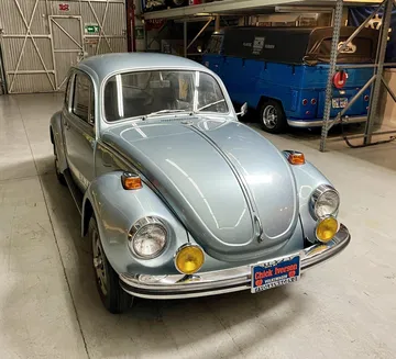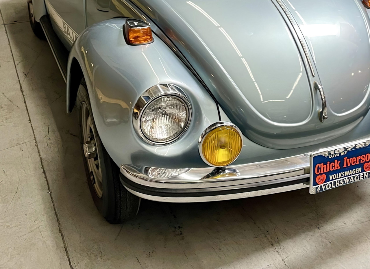 La línea del Escarabajo es una de las más bonitas de la historia. No por nada pasó por las manos de Ferdinand Porsche. Esta unidad especial presenta un color llamado Azul Maratón Metalizado sobre el que se impresionan un par de franjas blancas laterales donde pone «BAJA», en honor a las victorias de la Baja 1000.