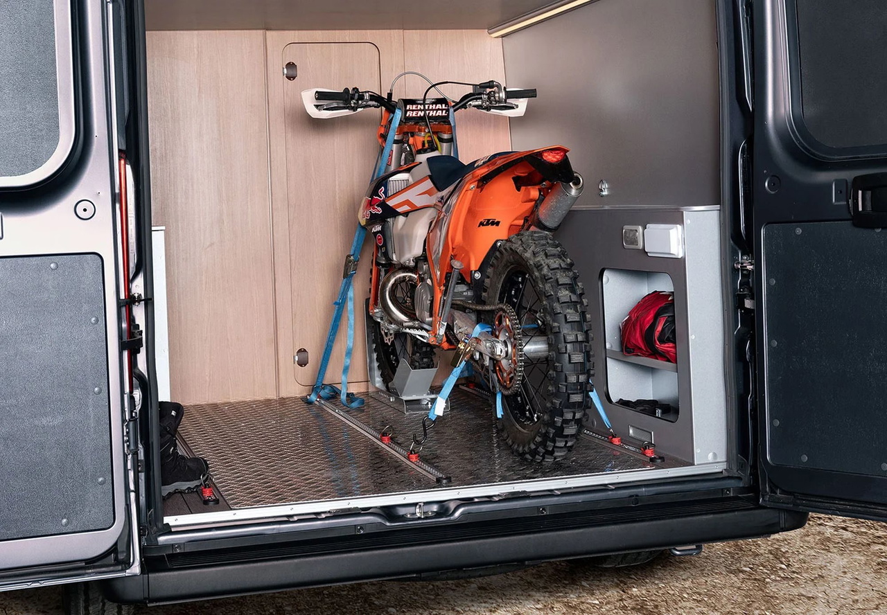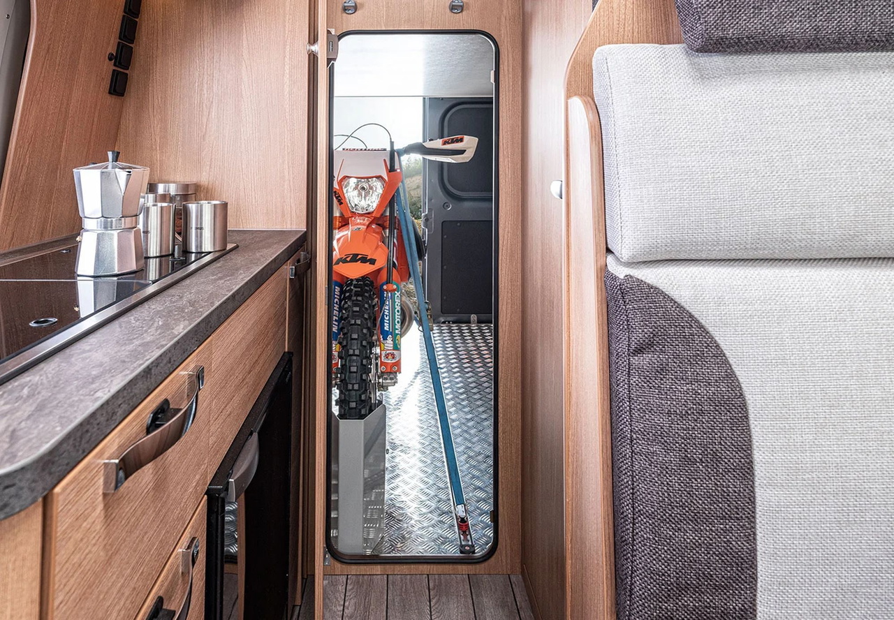 Normalmente los amantes del caravaning que quieren llevar también su moto en sus viajes suelen optar por adquirir autocaravanas con garajes de ciertas dimensiones o bien por añadir un portamotos posterior que lejos de ser la mejor solución además expone en exceso tu «juguete». Para los que quieren la maniobrabilidad de una camper y una excelente capacidad de carga está esta interesante propuesta de firma alemana que destila calidad por los cuatro costados.