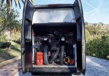 La Weinsberg CaraBus Outlaw es una de las campers más extrañas y atractivas que puedes encontrar actualmente en el mercado español. Es una propuesta muy enfocada a los usuarios más aventureros que suelen viajar con su motocicleta (una o dos) y necesitan un espacio amplio para guardar accesorios, herramientas o cualquier otra cosa.