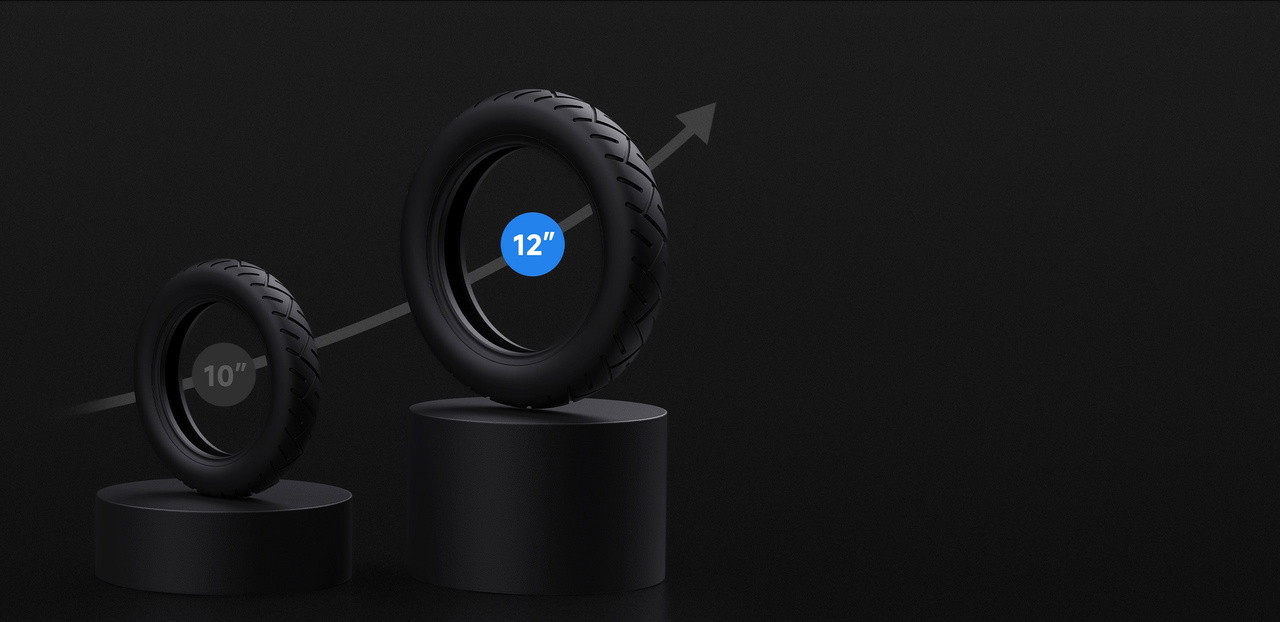 La adherencia al asfalto está asegurada por ruedas sin cámara de 12 pulgadas y la dirección se afirma con una suspensión que potencia el confort de marcha. Elementos que mejoran al resto de versiones más básicas del Xiaomi Electric Scooter 5 y por supuesto a todas las anteriores que pueblan las calles españolas. De hecho, con respecto al resto de versiones, la plataforma es más ancha y el manillar más alto, lo que ayuda a una mejor conducción. Dicho de otro modo, puede enfrentar baches y badenes con más versatilidad.