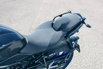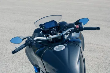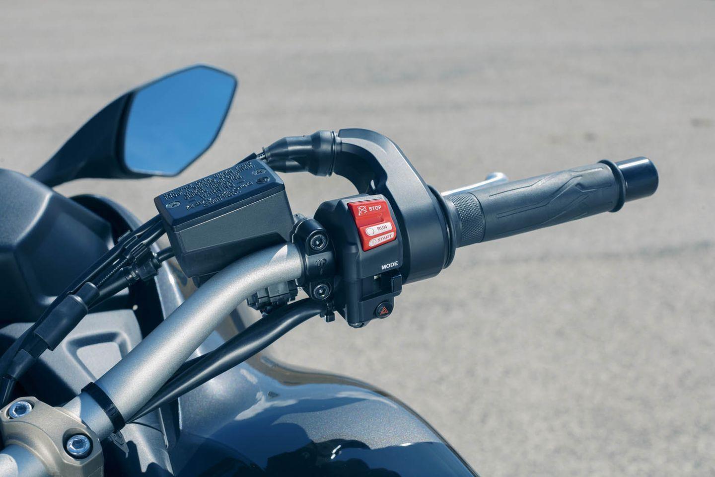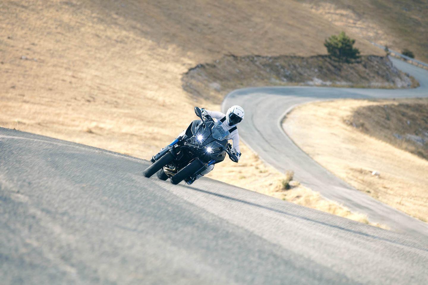 La clave de esta moto es su sistema de doble horquilla invertida frontal, unida a llantas delanteras de 15 pulgadas, con un disco de freno por rueda. Gracias a esta tecnología, cada rueda se amortigua de forma independiente, aumentando varios enteros la estabilidad del vehículo ante un terreno bacheado. Como en el vídeo promocional se puede ver, la marca quiere que veamos esta tecnología como si fueran unos esquís: ágiles y dinámicos, pero más estables que un solo patín. Siendo una moto de corte deportivo, lo cierto es que este aumento de estabilidad vendrá obligatoriamente ligado a un menor paso por curva.