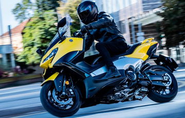 Los frenos están compuestos de dos pinzas radiales de 4 pistones que frenan la TMAX 560 2022 sin ningún tipo de problema. Todo esto va con un chasis ligero de aluminio forjado y unas llantas SPIN FORGED de 10 radios ligeras también. Todo esto hace que el conjunto este muy contenido en peso alcanzando los 218 kgs. Aparte de todo lo anterior, también cuenta con diferentes modos para seleccionar el modo de funcionamiento del motor desde D_MODE, también tiene un control de tracción y un acelerador electrónico controlado por el micro procesador de Yamaha YCC-T.