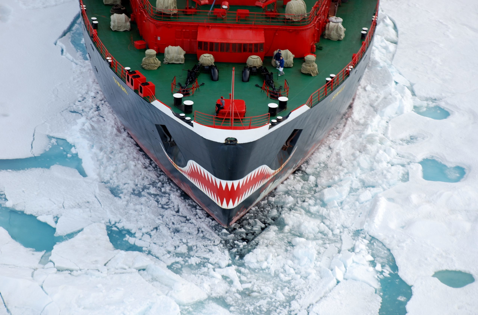 Es ruso y lleva la boca de un monstruo pintada en su proa, porque su trabajo es devorar placas de hielo en el Ártico a base de emplear el poder del átomo. Todo para rescatar a otros barcos y liderar expediciones al Polo Norte.