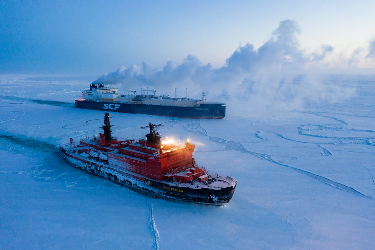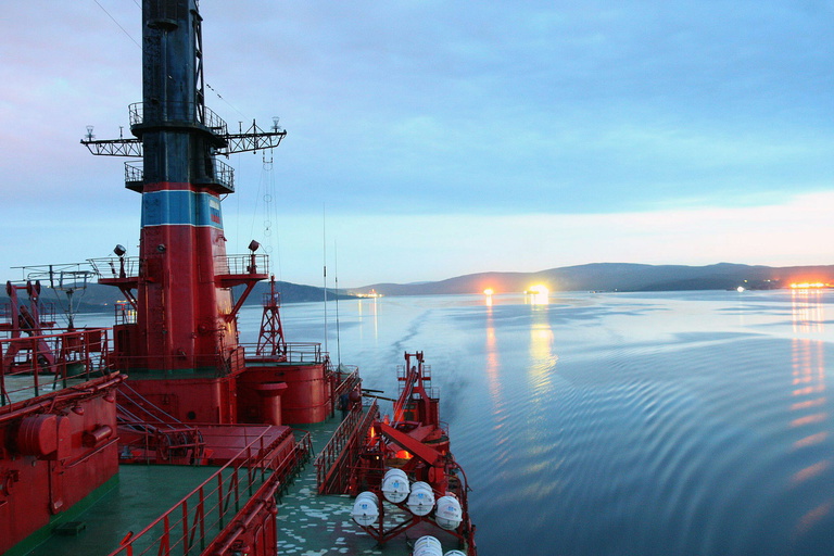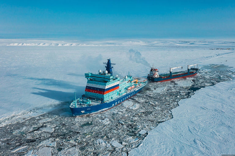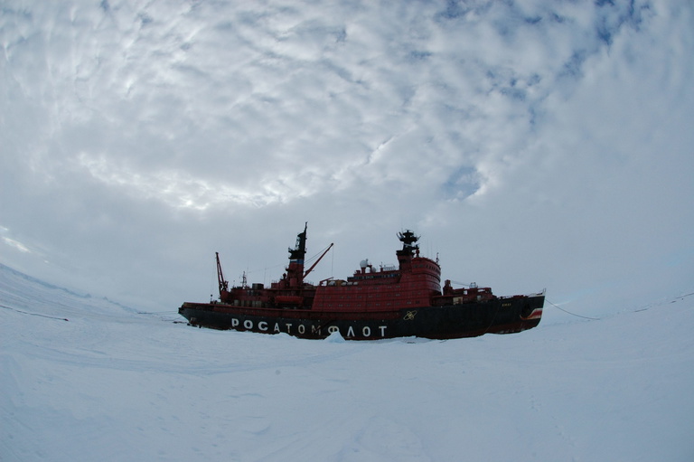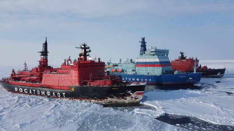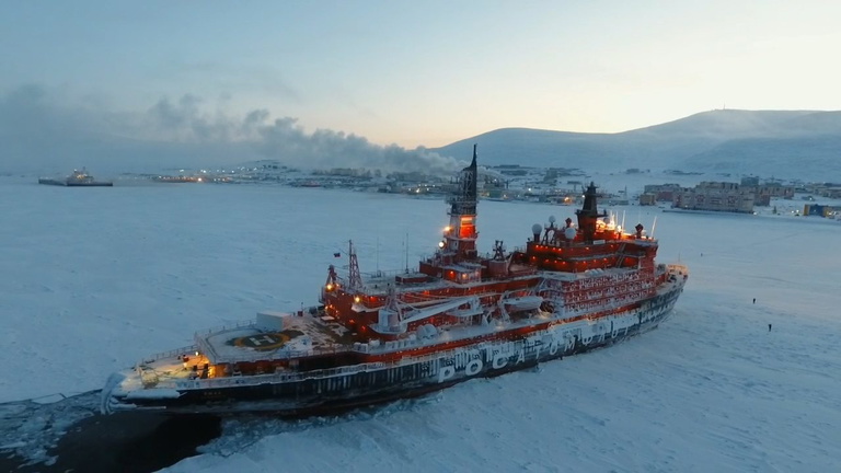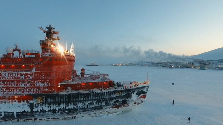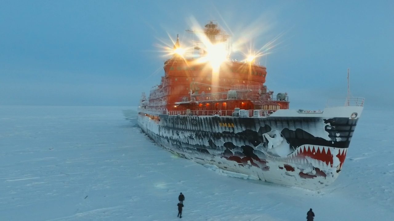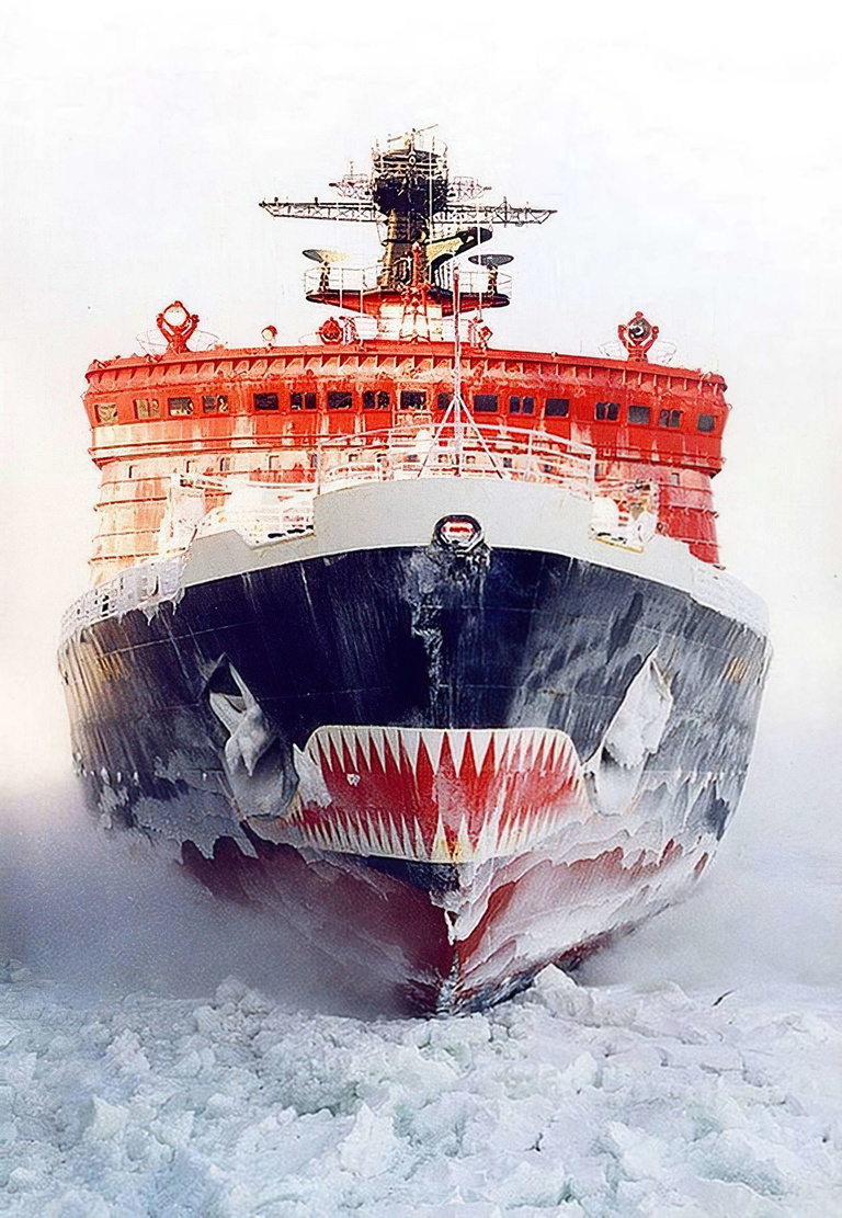 Es ruso y lleva la boca de un monstruo pintada en su proa, porque su trabajo es devorar placas de hielo en el Ártico a base de emplear el poder del átomo. Todo para rescatar a otros barcos y liderar expediciones al Polo Norte.