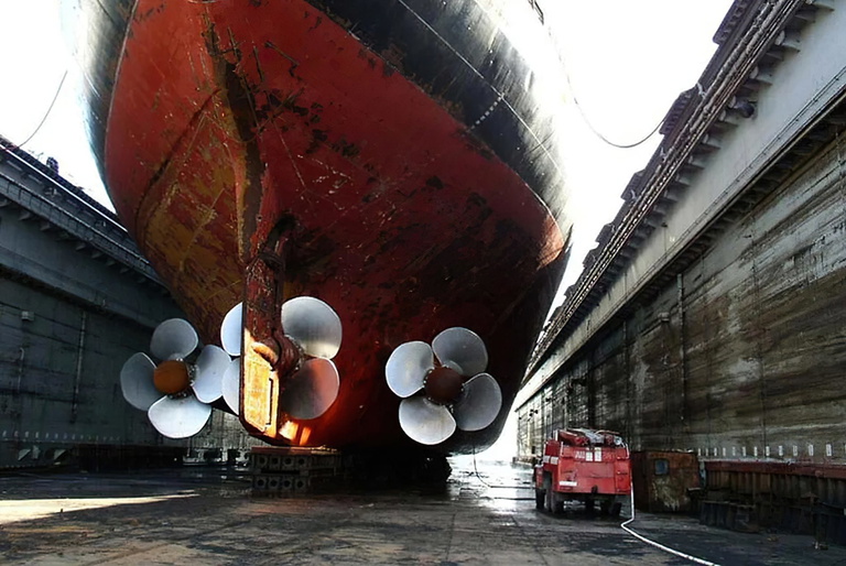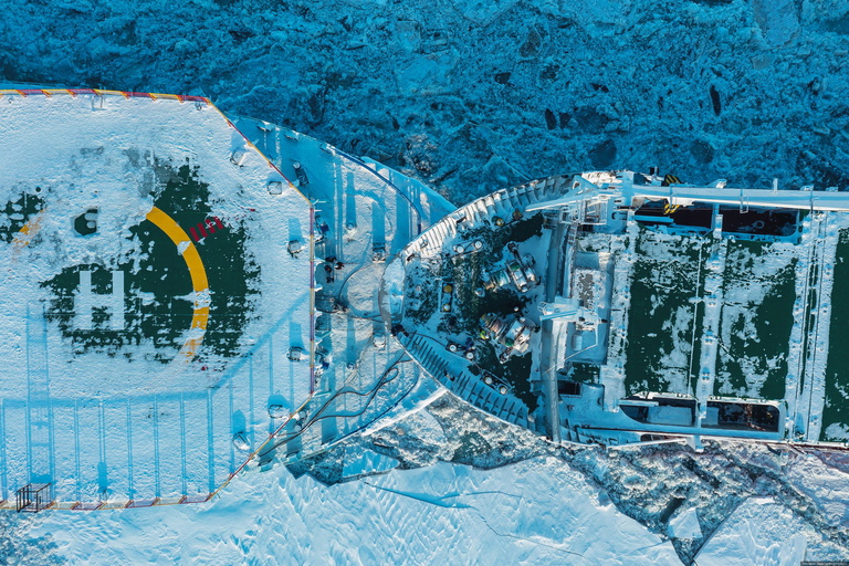 Para lograrlo cuenta con una proa reforzada con doble casco exterior, con espesor de 48mm. La zona de contacto con el hielo está revestida de polímero para reducir la fricción. Y esto es clave, porque el Yamal, básicamente, se reclina para «subir» sobre el hielo y partirlo con su propio peso de 23.000 toneladas (desplazamiento).