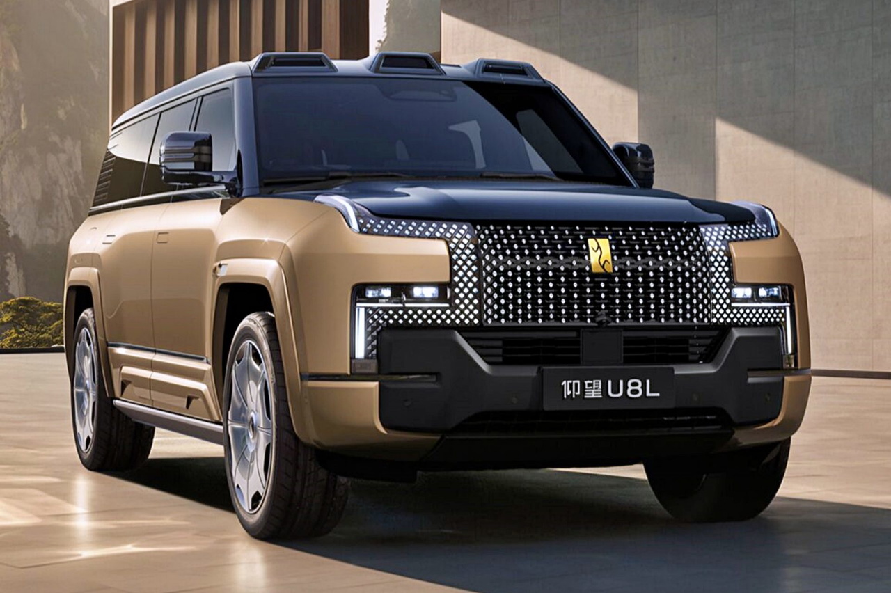 El U8L es un coche deliberadamente excesivo. Es la versión grande del U8, que ya es enorme. Mide 5,4 metros de largo, 2,05 metros de ancho y casi dos metros de alto. Es 35 cm más largo que un Range Rover e incluso más grande que el Rolls-Royce Cullinan. Tiene una batalla descomunal de 3.250 mm, más propia de una limusina, y su diseño super cuadrado realza todavía más su enorme tamaño.