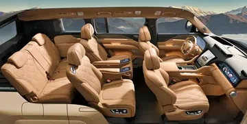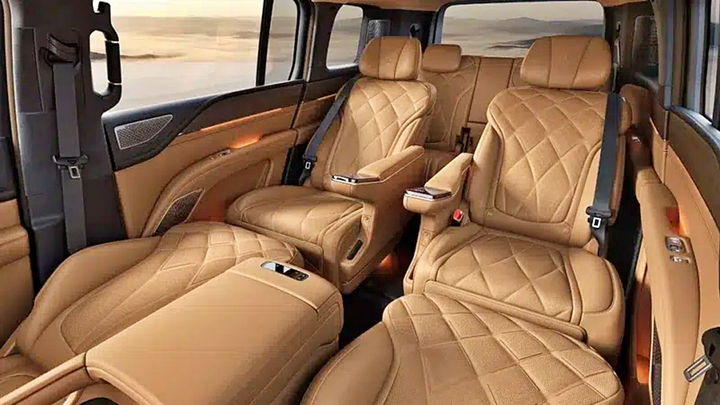 Pero lo verdaderamente alucinante está en el interior y cuando veas el vídeo, lo entenderás perfectamente. El habitáculo tiene seis asientos (2+2+2) y es más parecido a la primera clase de una aerolínea de lujo que a un coche normal. La segunda fila tiene asientos «gravedad cero» con 18 puntos de masaje, reposapiés, pantalla integrada en el reposabrazos, mesita plegable, cargador inalámbrico y altavoces en el reposacabezas.