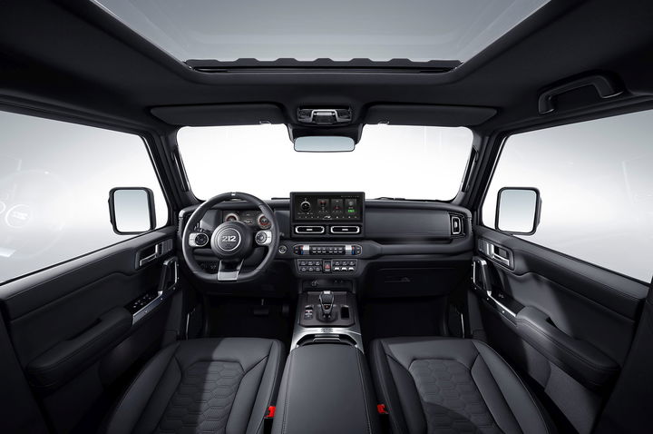 Para el bloque diésel se conservan la mayoría de elementos como la caja de cambios automática de ocho velocidades y el sistema de tracción total a las cuatro ruedas con reductora y posibilidad de bloquear el diferencial central. Es por tanto un todoterreno de verdad con base de largueros y travesaños que ya ha demostrado en China sus buenas dotes camperas.