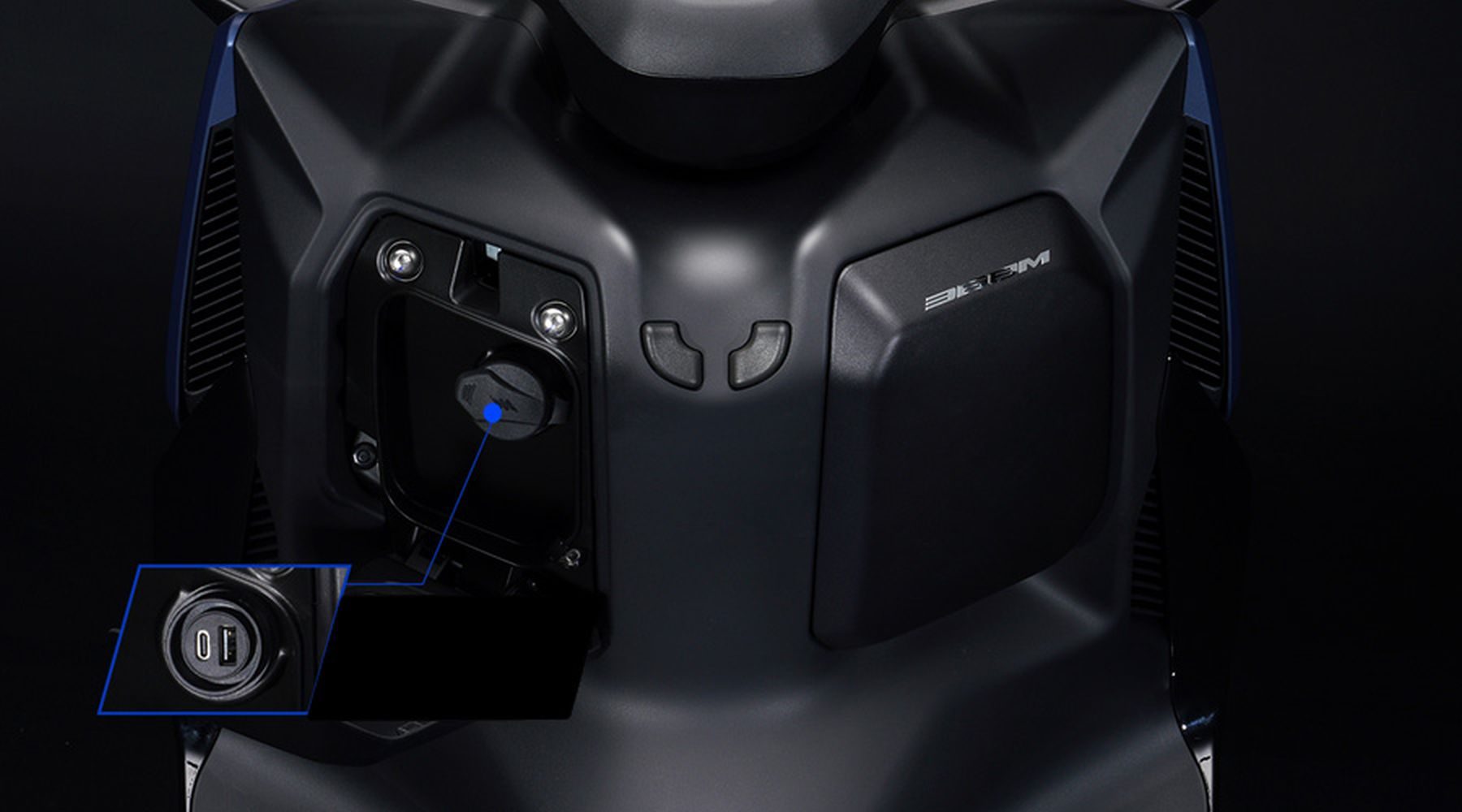También dentro del equipamiento estándar se incluyen la instrumentación con conectividad móvil y Mirror Screen, hueco bajo el asiento para guardar un casco, doble guantera tras el escudo, pata lateral, caballete central, dos cúpulas delanteras con regulación en altura, estriberas abatibles para el pasajero, varios USB, etc.