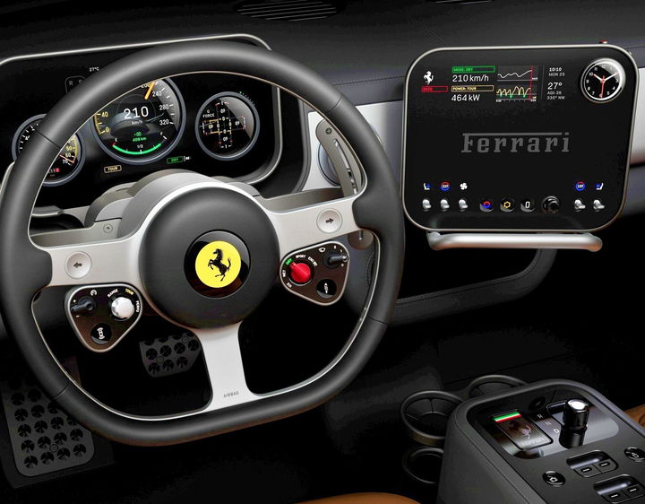 Estábamos muy equivocados. Si creíamos que Ferrari iba a seguir el perfil tecnológico tan habitual en los últimos coches eléctricos que se van lanzando al mercado, lo cierto es que la firma del cavallino ha optado por distanciarse de manera radical de ello, al menos en lo que respecta a su interior. Ha sido a través de un comunicado oficial como la compañía ha arrojado luz sobre este modelo que tanto dará que hablar por su razón de s