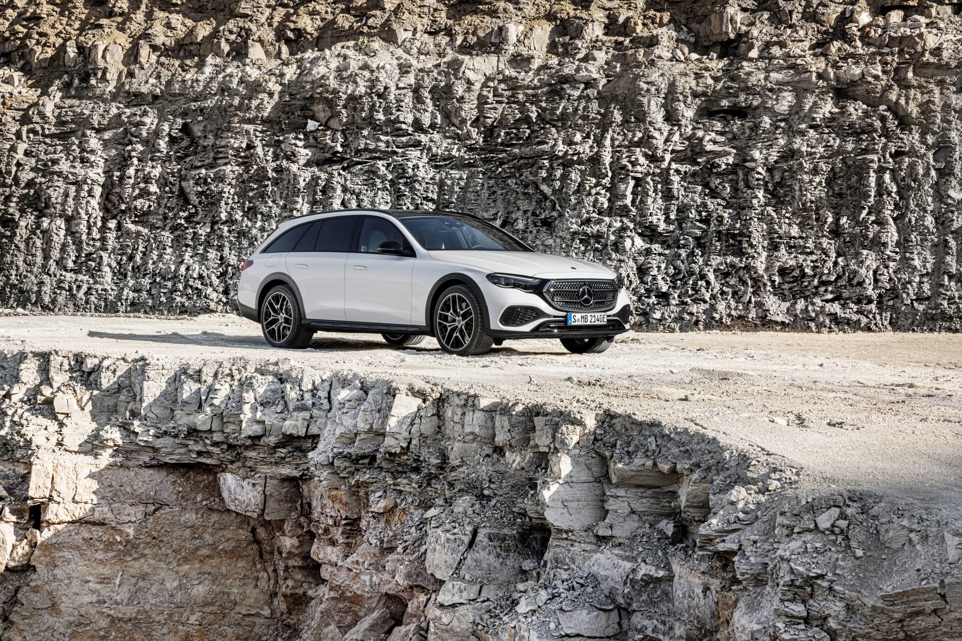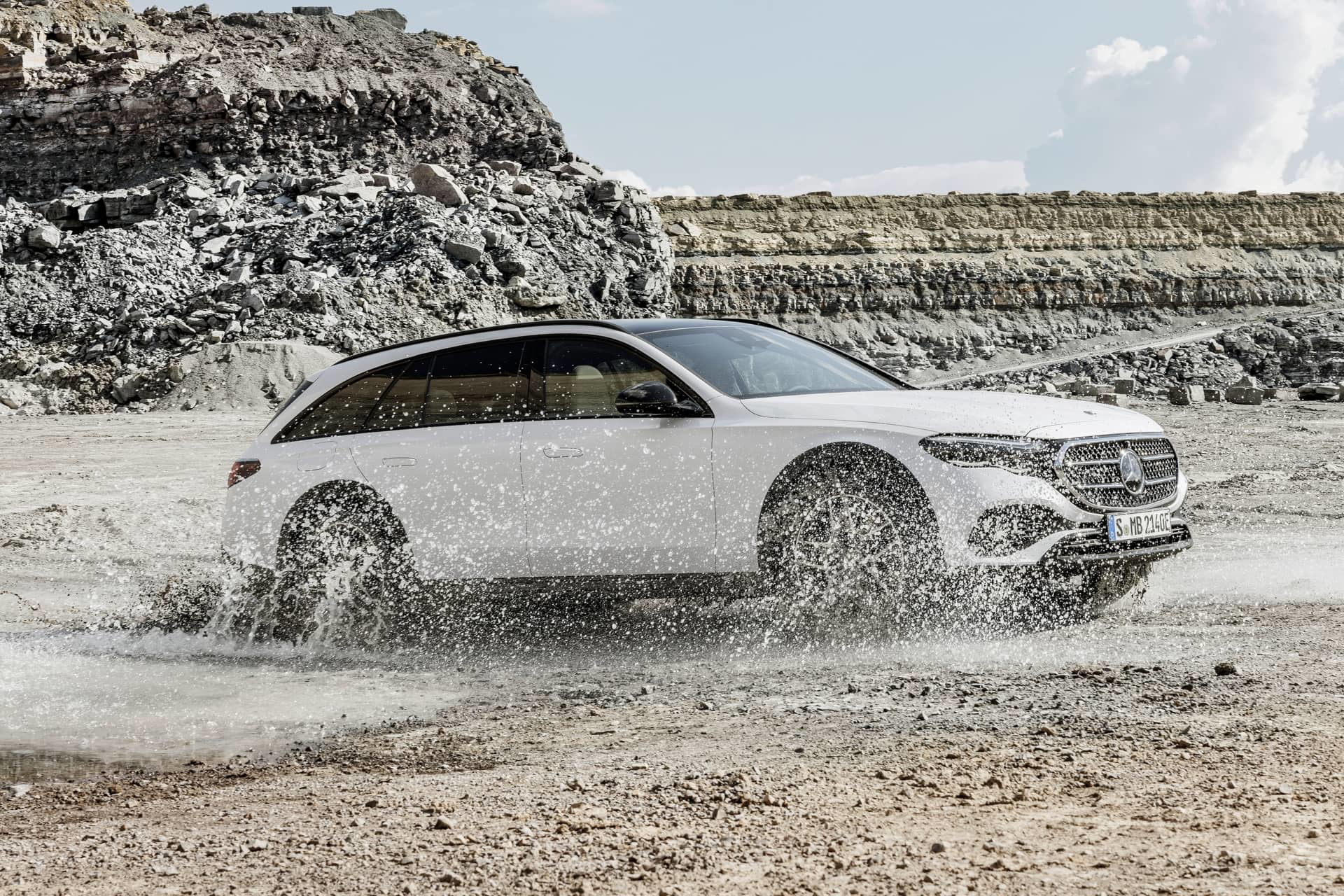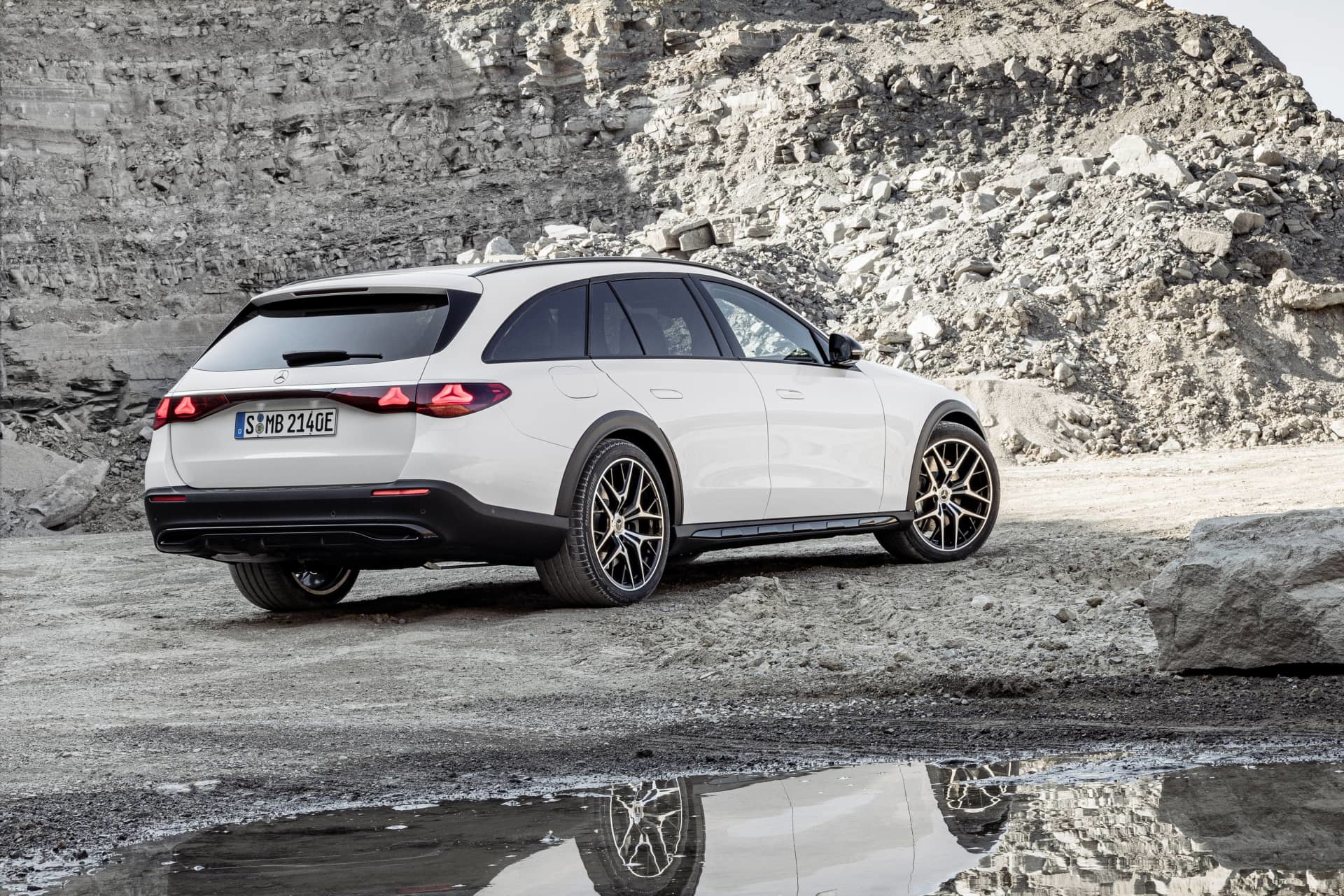 El Mercedes Clase E All Terrain está basado en el Mercedes Clase E Estate familiar, y está orientado a quienes buscan un término medio entre un familiar tradicional y un SUV. Sus pasos de rueda están forrados en plástico y además sus paragolpes son más grandes, imitando la presencia de un cubrecárter. Cuenta con suspensión neumática de serie, algo que le permite incrementar su altura libre al suelo en hasta 20 mm con respecto a su posición inical, logrando una altura libre al suelo de 15,6 cm, comparable a la de un SUV – y apoyada por un sistema 4MATIC de tracción total permanente.