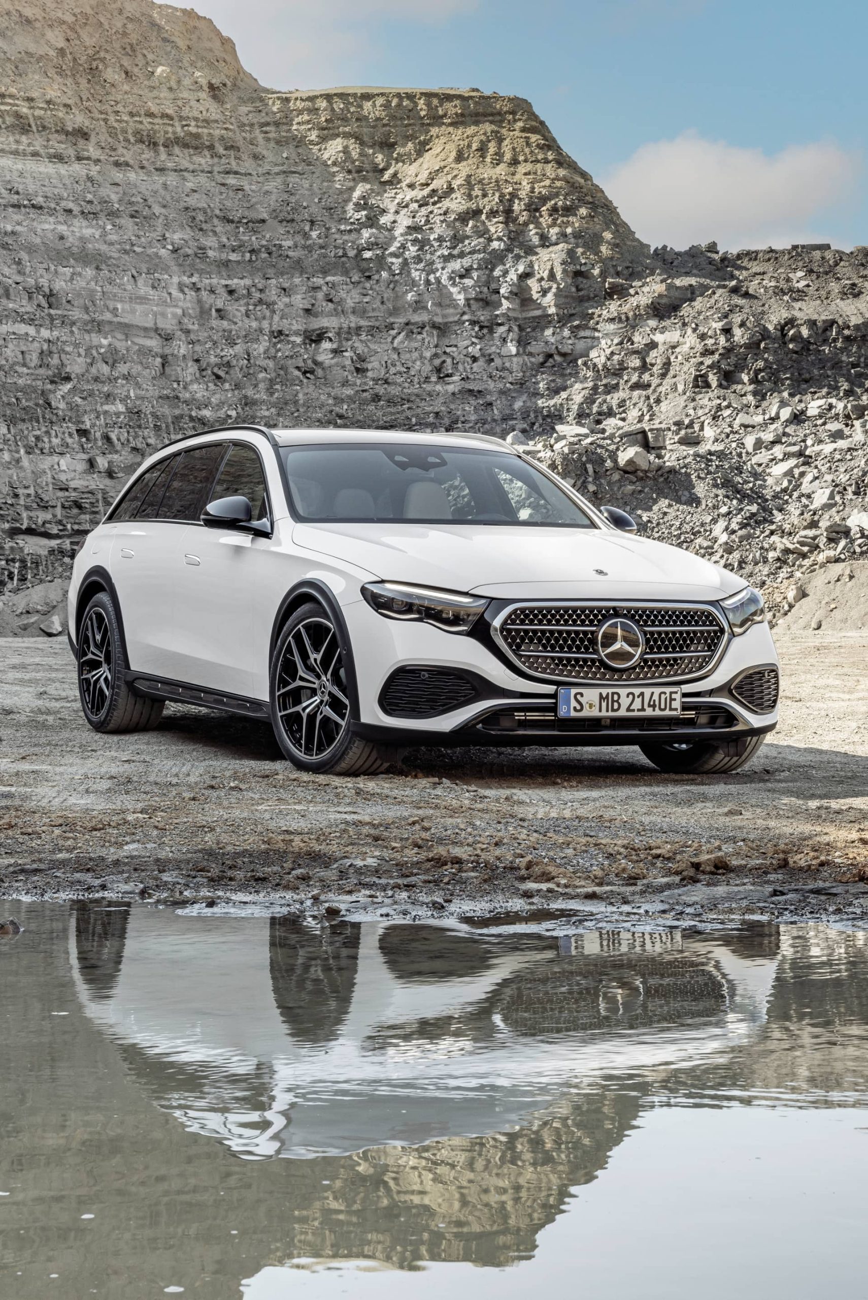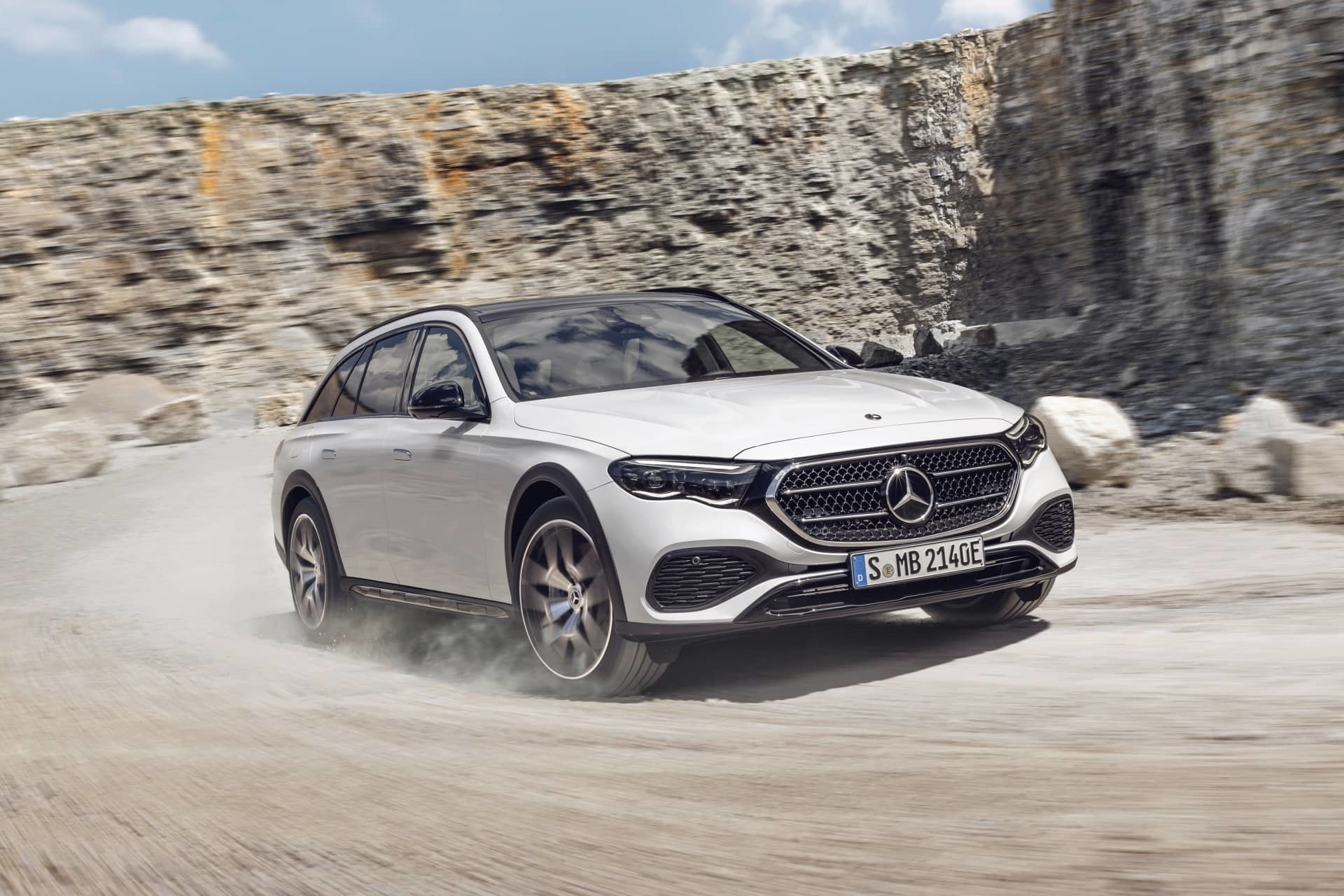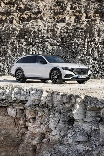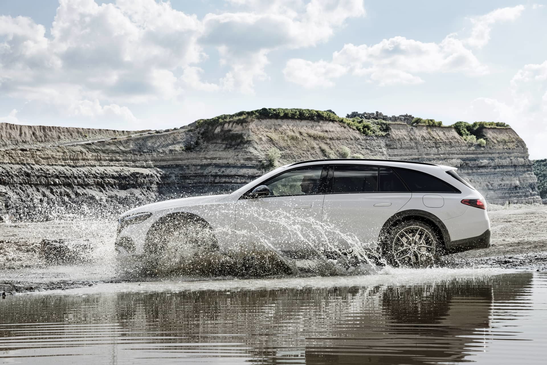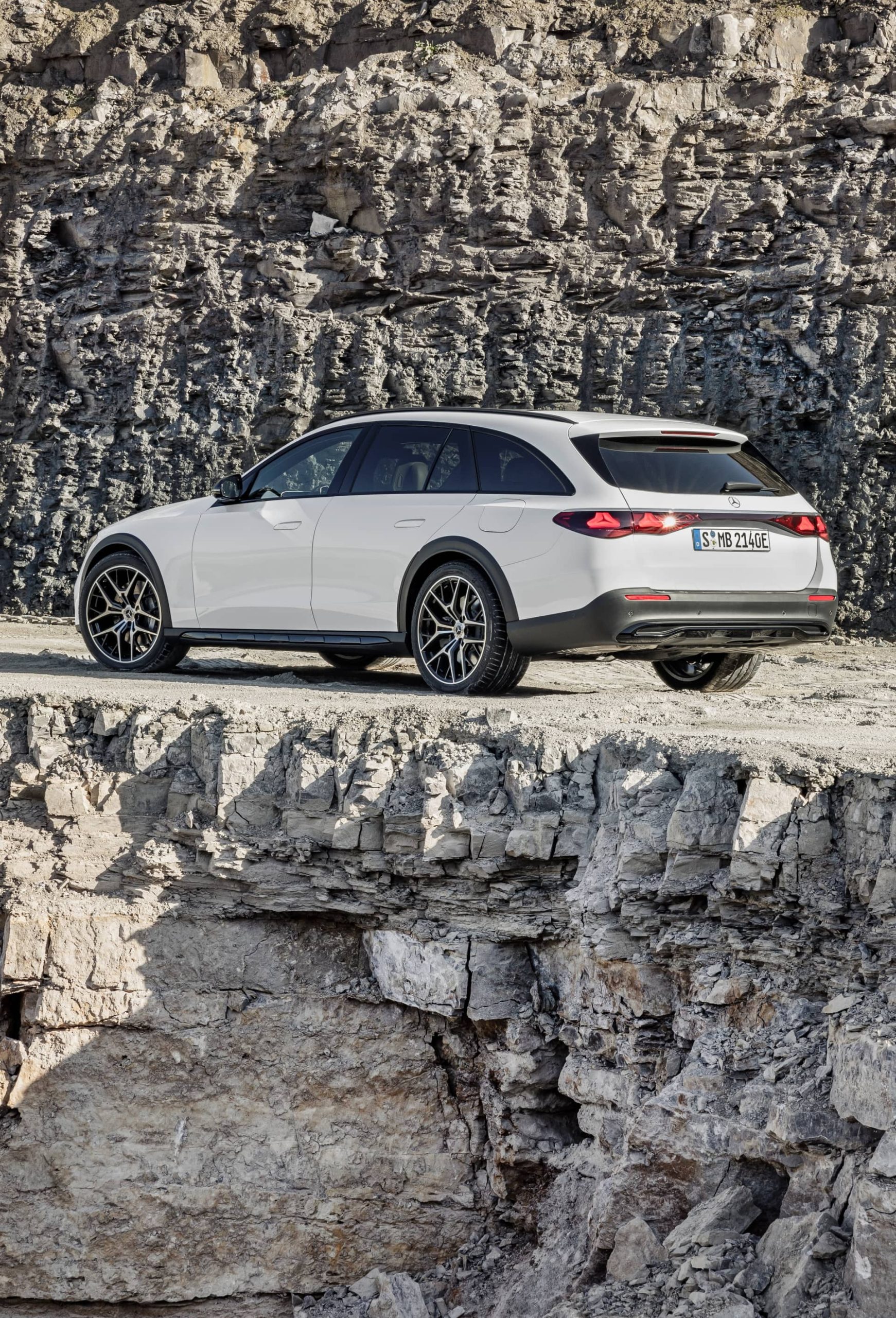 El Mercedes Clase E All Terrain está basado en el Mercedes Clase E Estate familiar, y está orientado a quienes buscan un término medio entre un familiar tradicional y un SUV. Sus pasos de rueda están forrados en plástico y además sus paragolpes son más grandes, imitando la presencia de un cubrecárter. Cuenta con suspensión neumática de serie, algo que le permite incrementar su altura libre al suelo en hasta 20 mm con respecto a su posición inical, logrando una altura libre al suelo de 15,6 cm, comparable a la de un SUV – y apoyada por un sistema 4MATIC de tracción total permanente.