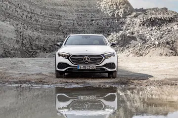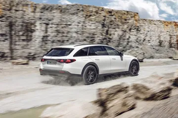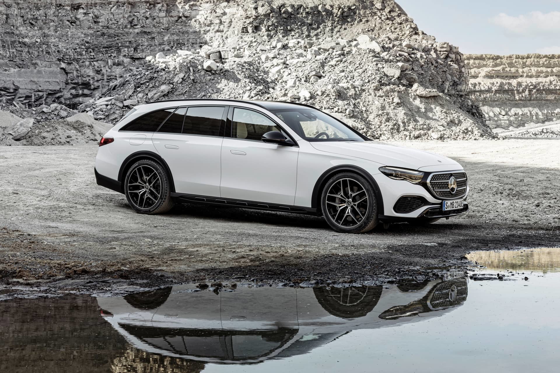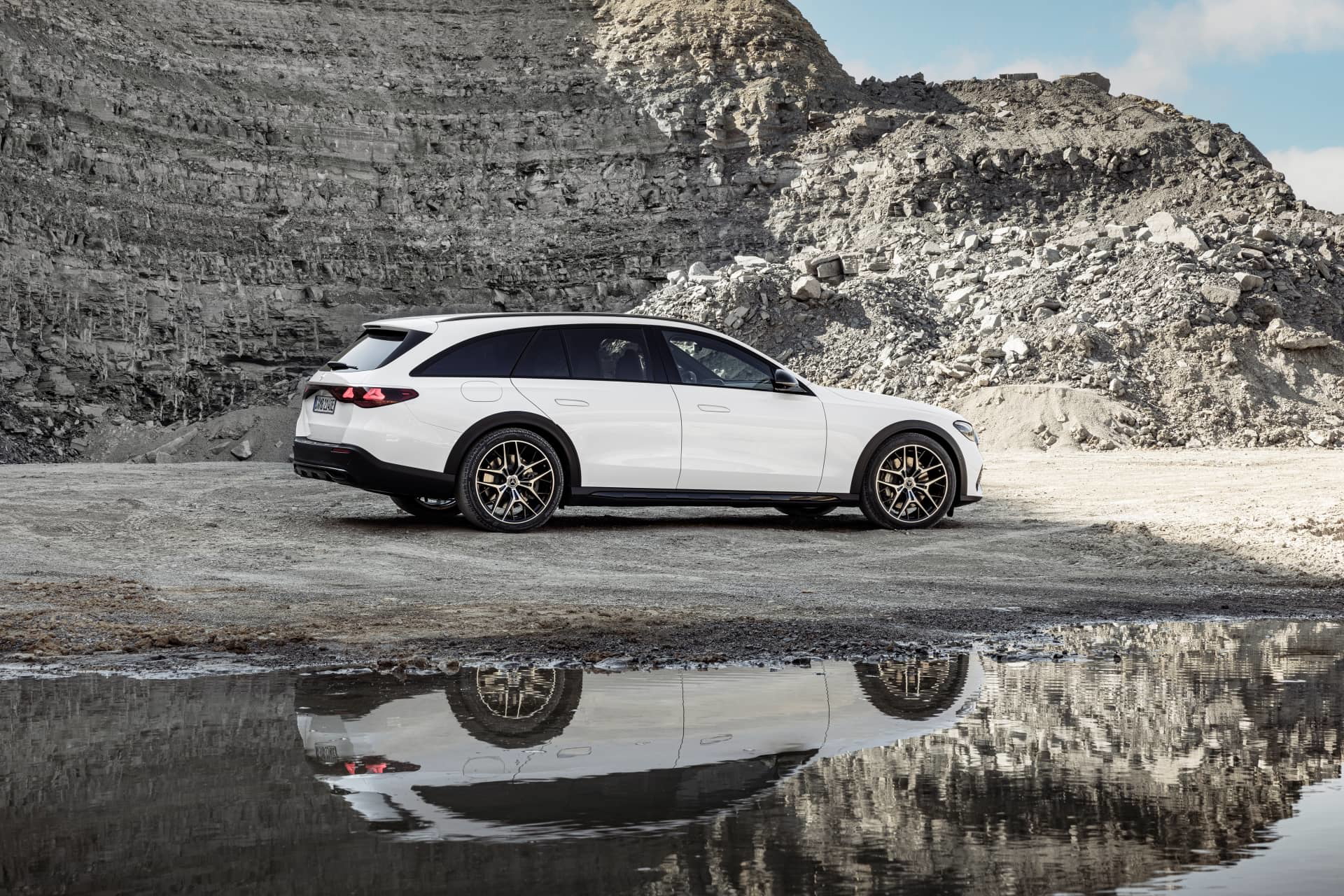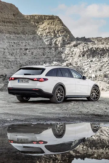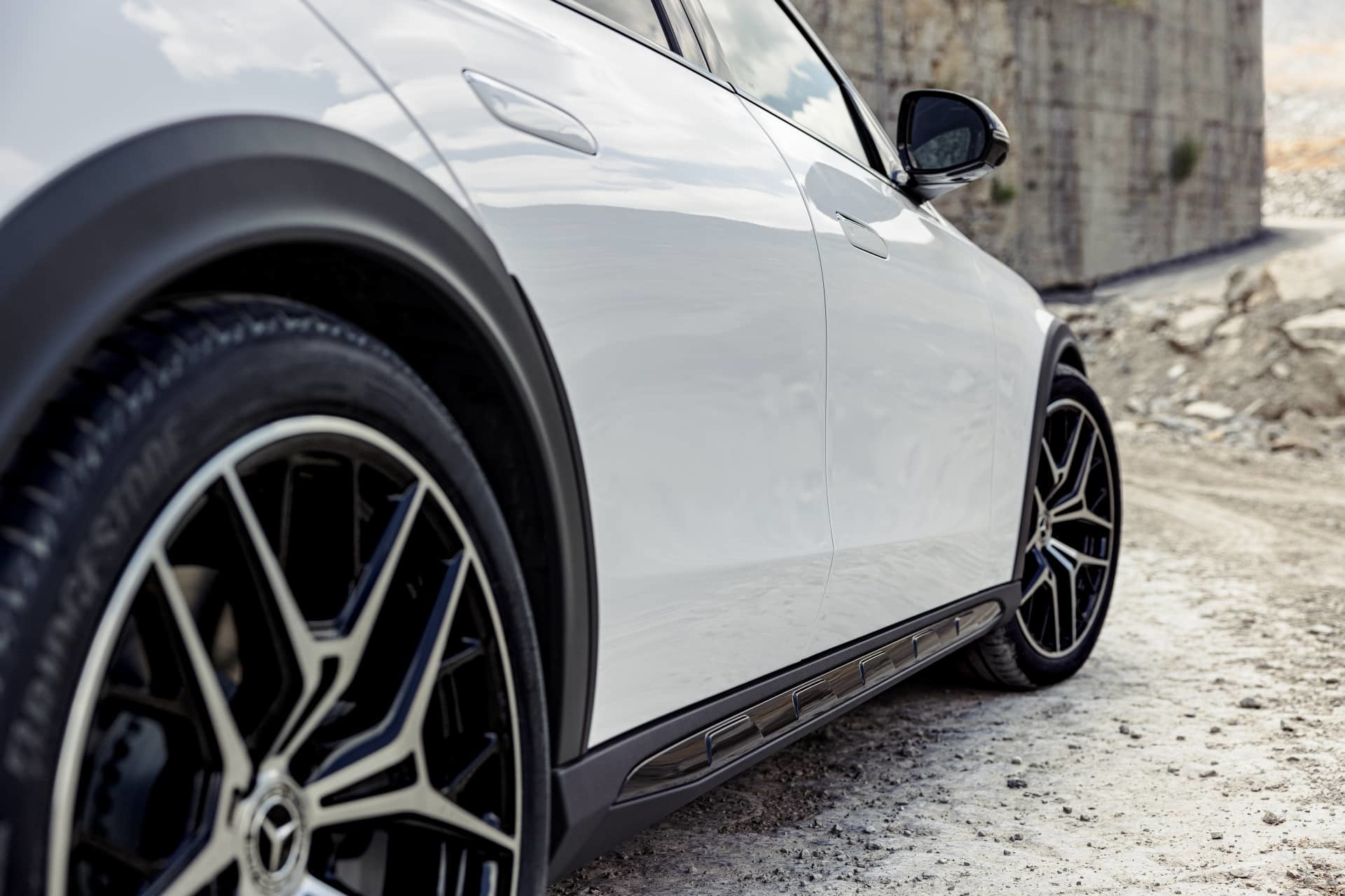 El Mercedes Clase E All Terrain está basado en el Mercedes Clase E Estate familiar, y está orientado a quienes buscan un término medio entre un familiar tradicional y un SUV. Sus pasos de rueda están forrados en plástico y además sus paragolpes son más grandes, imitando la presencia de un cubrecárter. Cuenta con suspensión neumática de serie, algo que le permite incrementar su altura libre al suelo en hasta 20 mm con respecto a su posición inical, logrando una altura libre al suelo de 15,6 cm, comparable a la de un SUV – y apoyada por un sistema 4MATIC de tracción total permanente.
