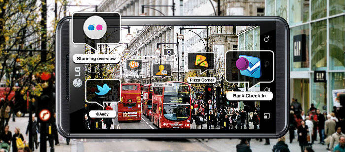 Además de superponer a la carretera por la que circulamos las indicaciones del GPS, Wikitude extrae información de webs como Wikipedia, Yelp, Last.fm, Foursquare y otras bases de datos en línea y muestra en directo los puntos que puedan ser de interés para el usuario.
