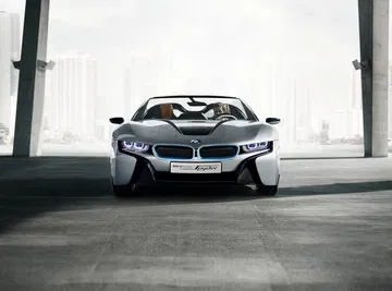 Estos dos motores, ubicados en ejes separados, dotan al BMW i8 Spyder de una tracción a las cuatro ruedas cuando sea necesario, pero además, lo dejan con un consumo homologado en ciclo europeo de 3l/100 km, todo ello con una velocidad máxima de 250 km/h y parando el crono en el 0 a 100 km/h en 5 segundos.