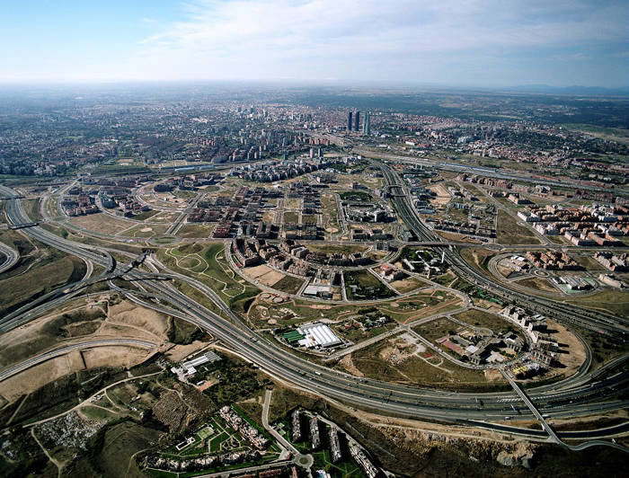 Los proyectos de Sanchinarro y Las Tablas han llevado unos 75 000 habitantes al norte de Madrid. A este mismo concepto responden la Ecociudad de Valdespartera, y el barrio de Arcosur, dos nuevas áreas de urbanización para 90 000 habitantes en el extremo sur de Zaragoza planteados a partir de bloques eficientes y densos, amplias avenidas y zonas verdes. Entonces ¿Dónde está el problema? El problema está en los coches.