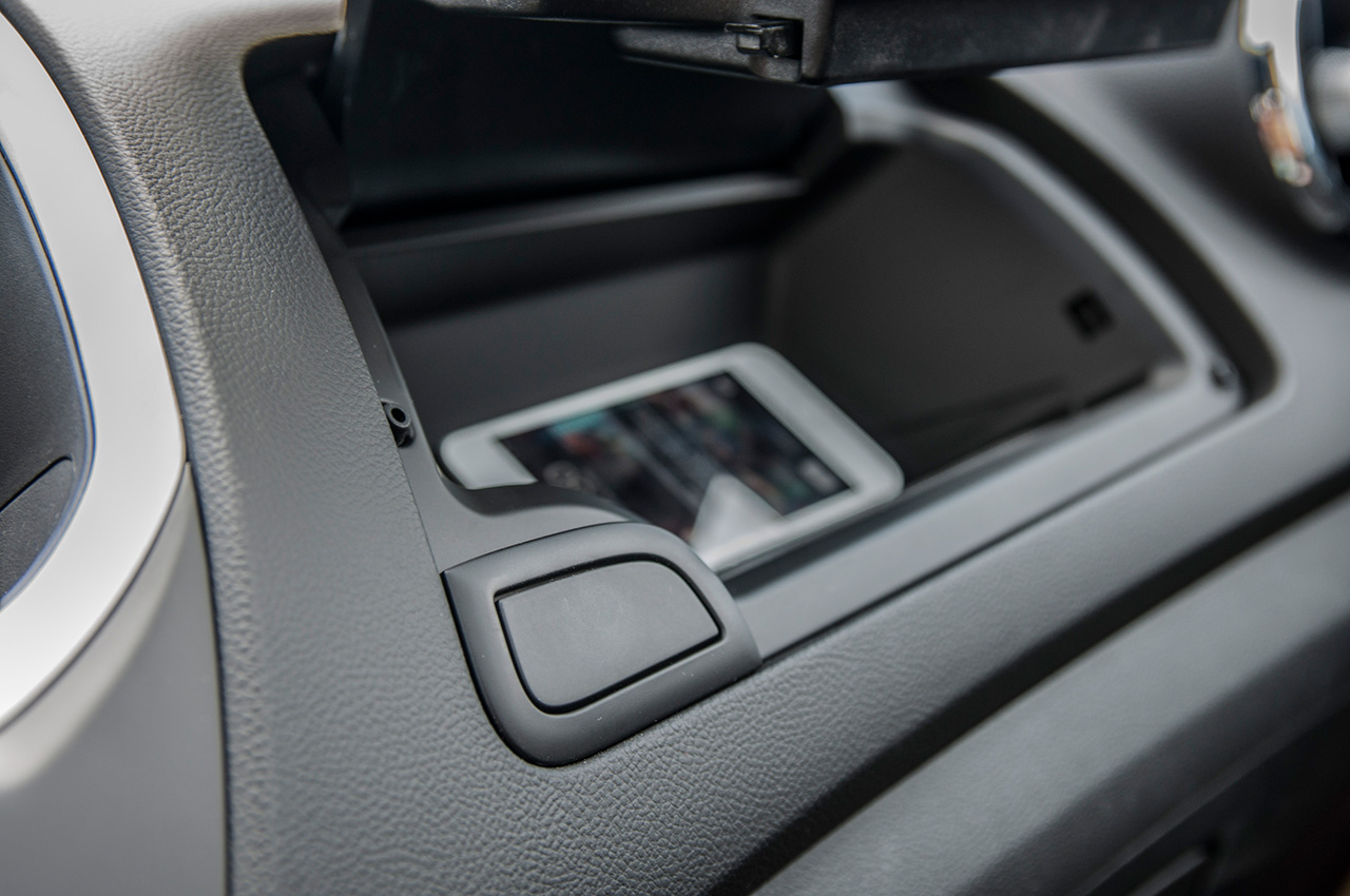 No obstante para utilizar estos servicios debemos conectar el smartphone con cable, en el caso del Trax desde una conexión USB muy accesible situada en una pequeña guantera superior sobre el salpicadero.
