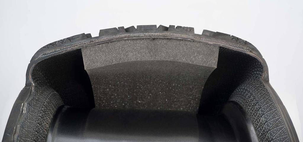 Para reducir en hasta 4 decibelios el sonido generado por el neumático, Goodyear ha diseñado una nueva cubierta que instala en su interior una lámina de poliuretano que consigue filtrar parte del ruido generado.