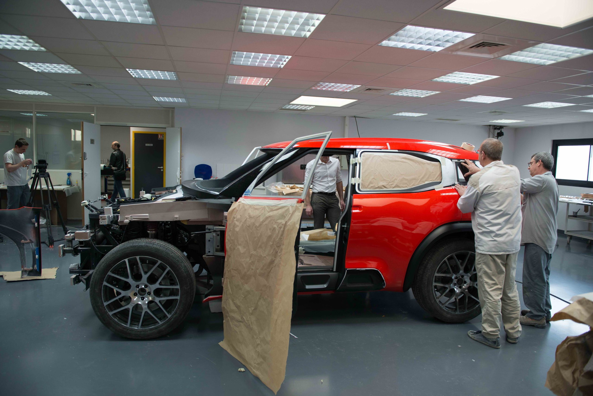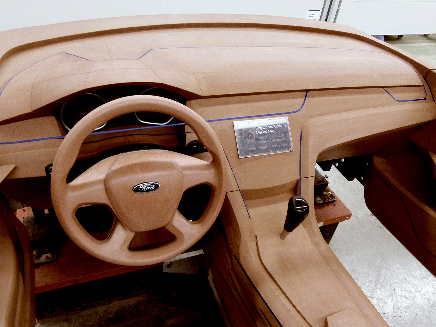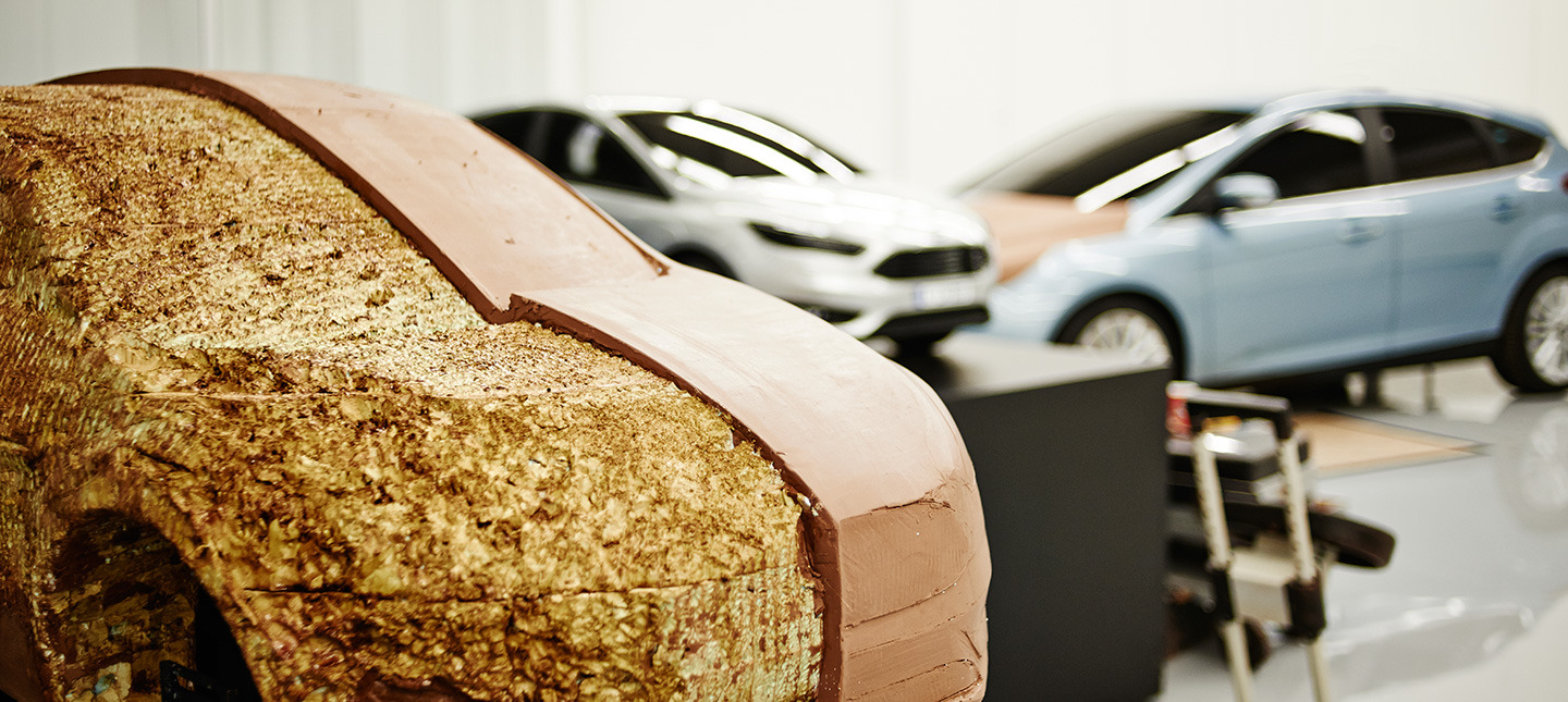 Y a continuación llega una de las fases más desconocidas, la creación del Clay Model, un modelo en arcilla. Los Clay Model también pueden crearse en diferentes fases. En ocasiones se comienza con una figura de arcilla a escala, que siempre termina convirtiéndose en una figura a tamaño real, sobre la que los diseñadores, espátula en mano, podrán dar forma a la silueta del coche sin problemas. A menudo también se crean modelos de arcilla del habitáculo. Modelos que también pueden revestirse con piezas reales y materiales definitivos, por ejemplo llantas, neumáticos, placas metálicas, inserciones de plástico, e incluso lunas de cristal. Sobre esos modelos de arcilla los diseñadores también pueden jugar con los tonos de carrocería o investigando el uso de los materiales.